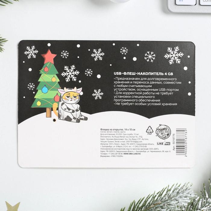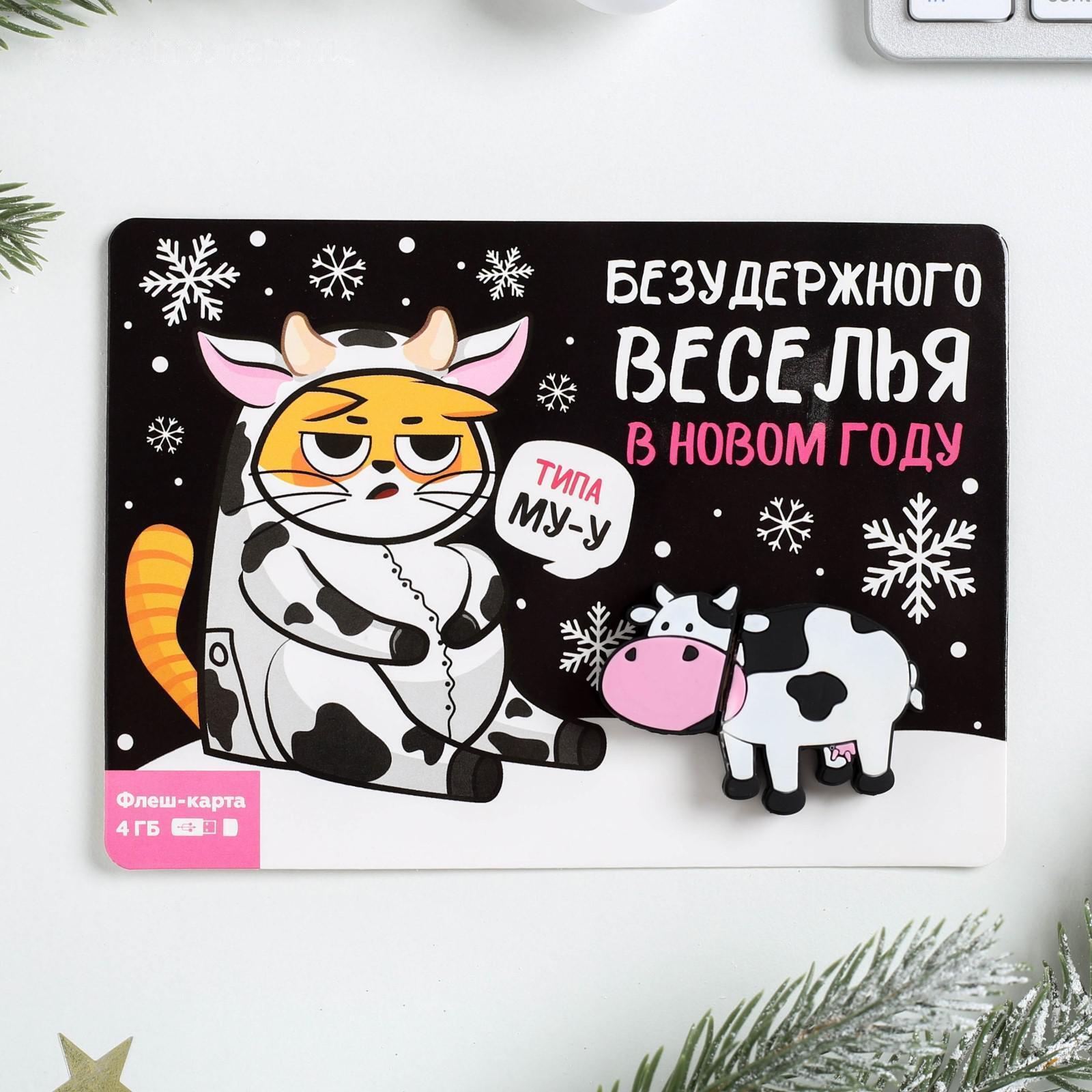Флешка на открытке «Веселья в новом году», 4 Гб, чёрно-белая 5018776