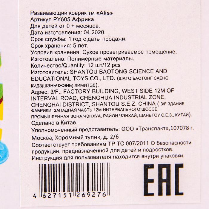 Развивающий коврик «Африка», с проектором, муз. 4 колыб., 8 сказ., свет, игрушки 5354817