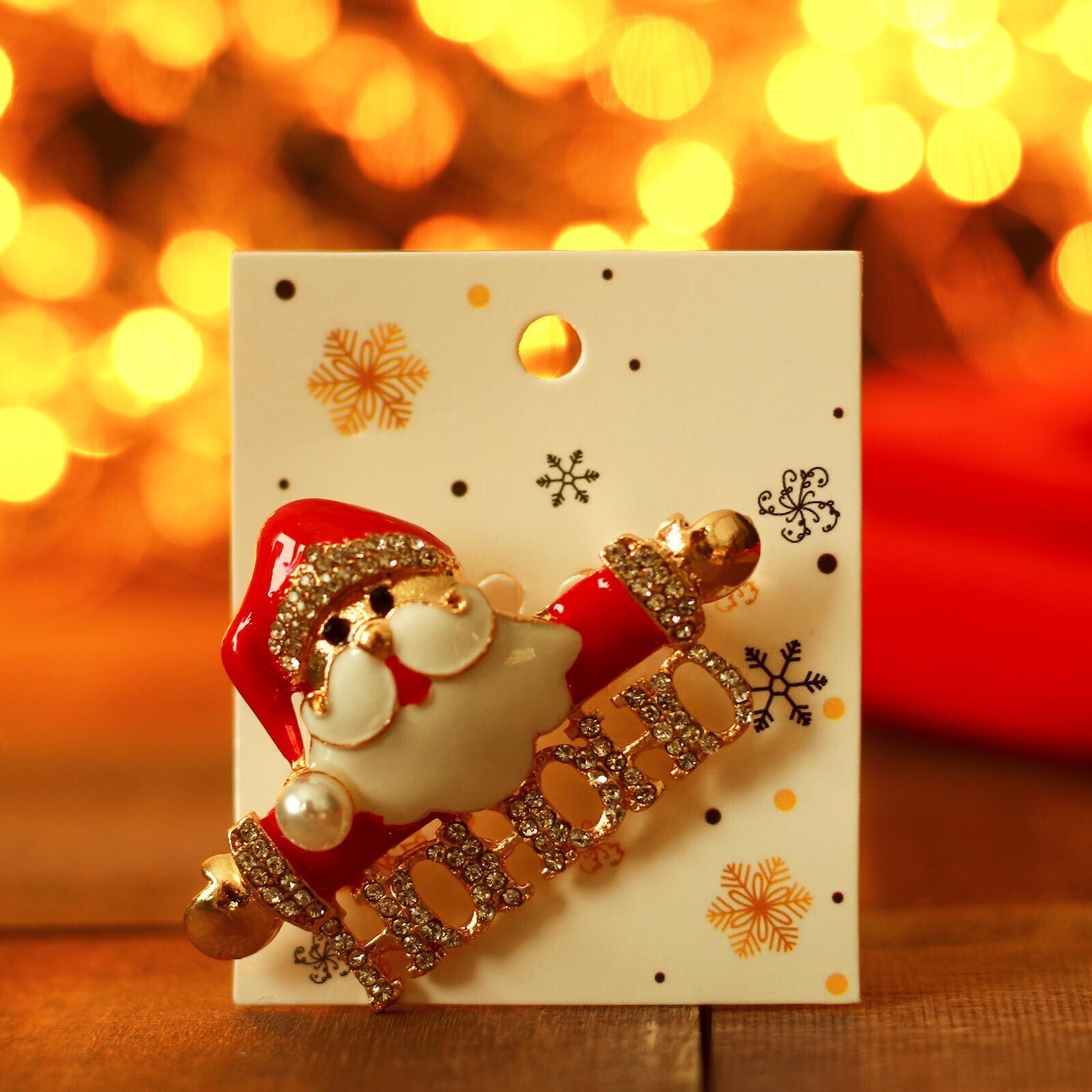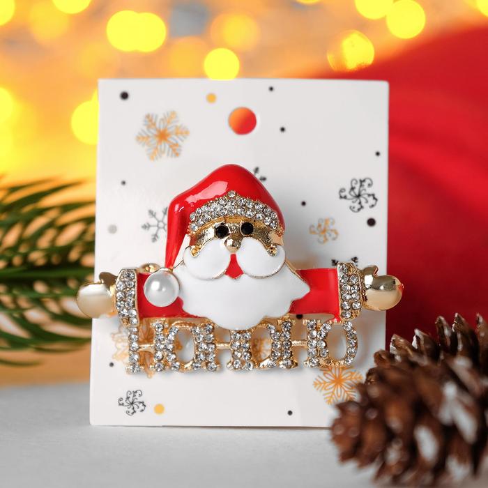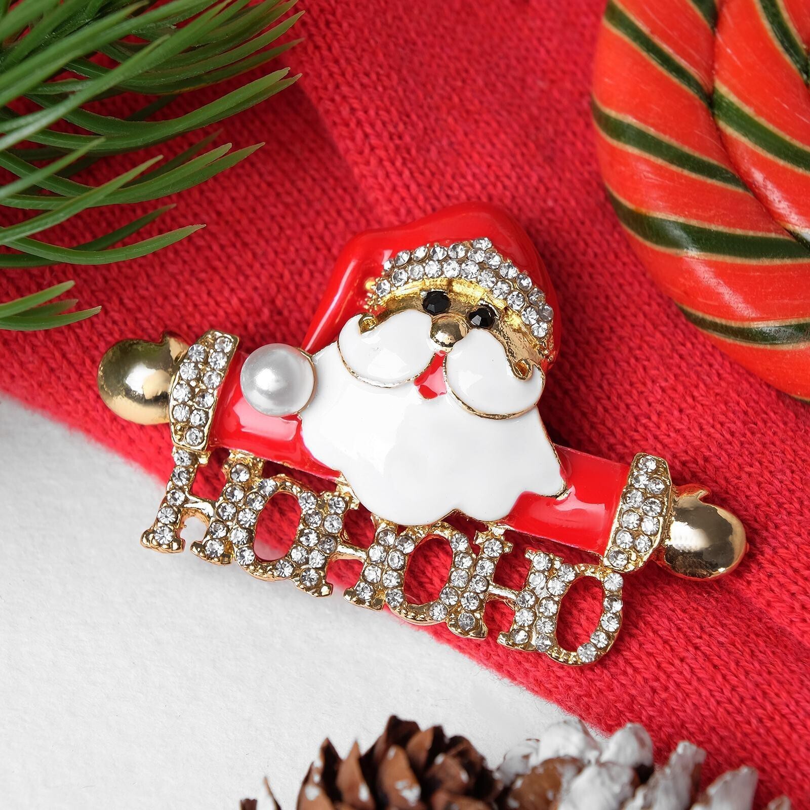 Брошь новогодняя "Дед Мороз" HOHOHO, цвет красно-белый в золоте 5005026