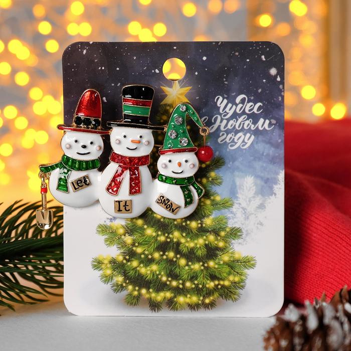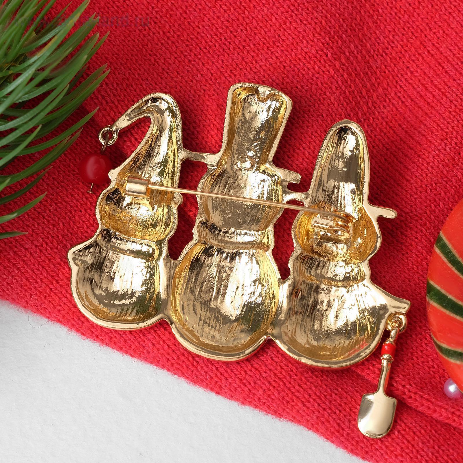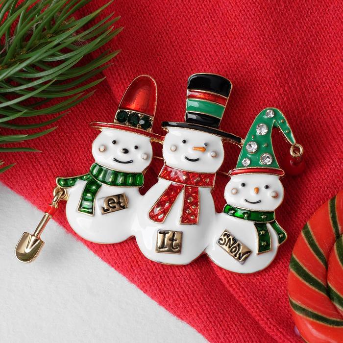 Брошь новогодняя "Снеговички" let it snow, цветная в золоте 4965508