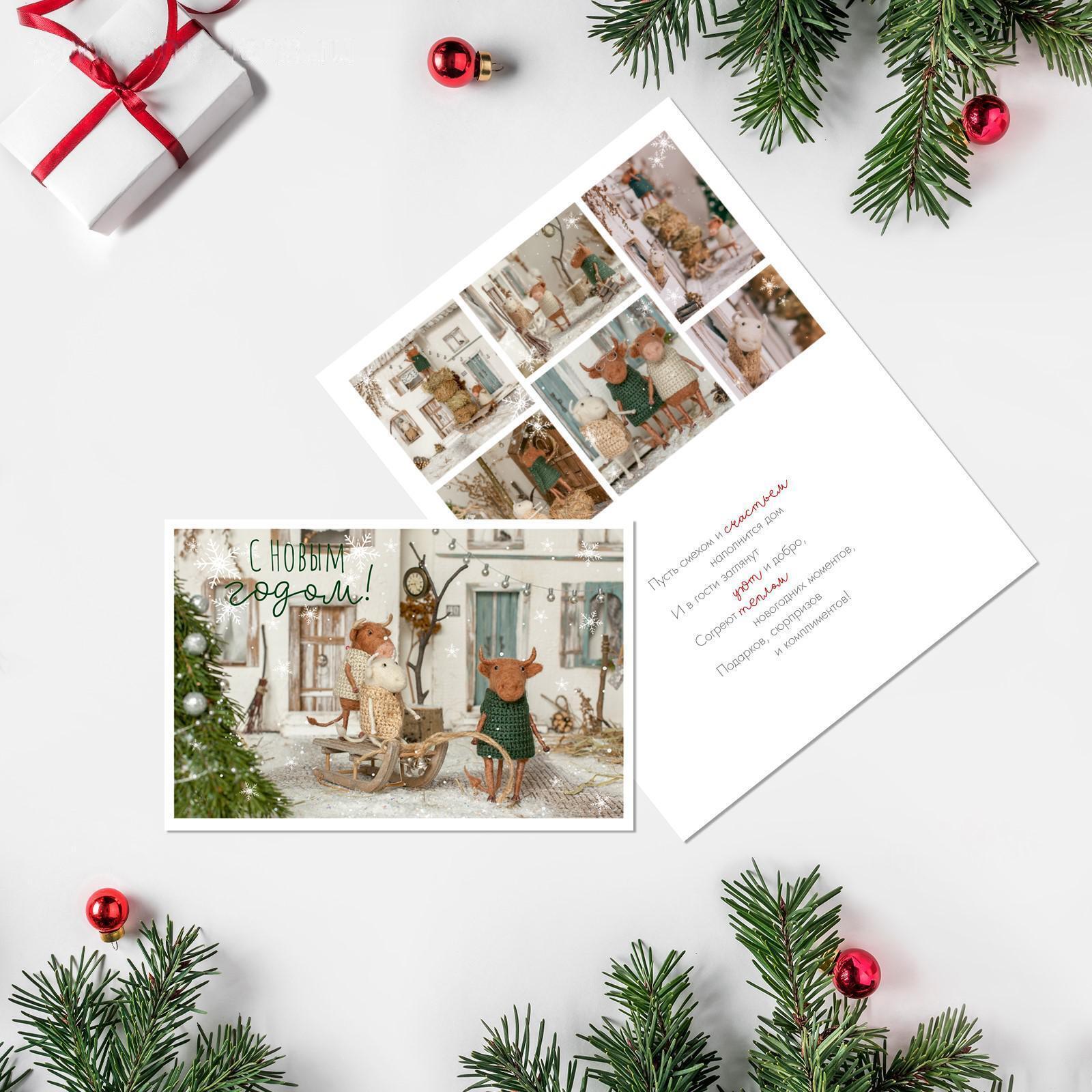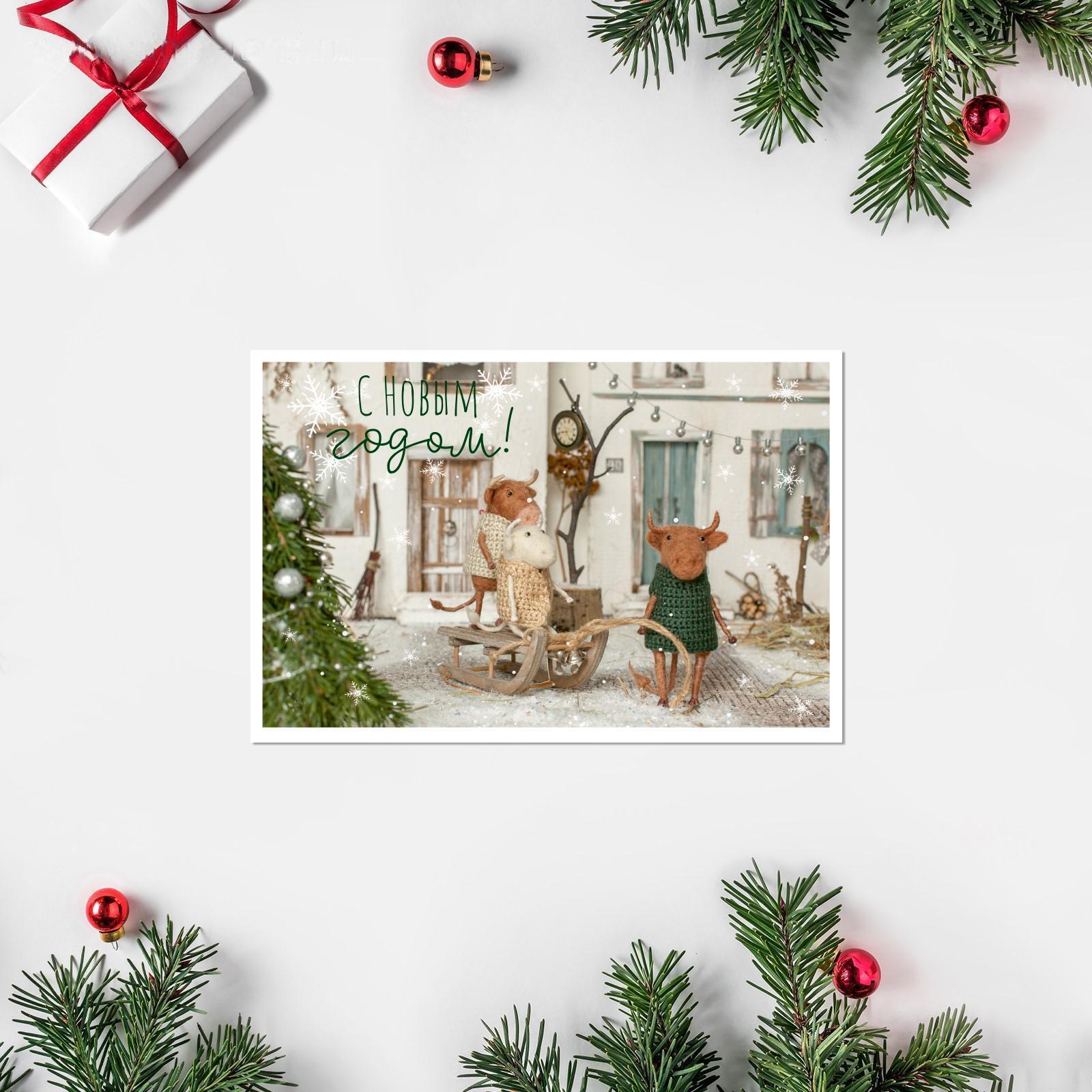 Открытка "С Новым Годом!" бычки на прогулке, 12 х 18см 5152933