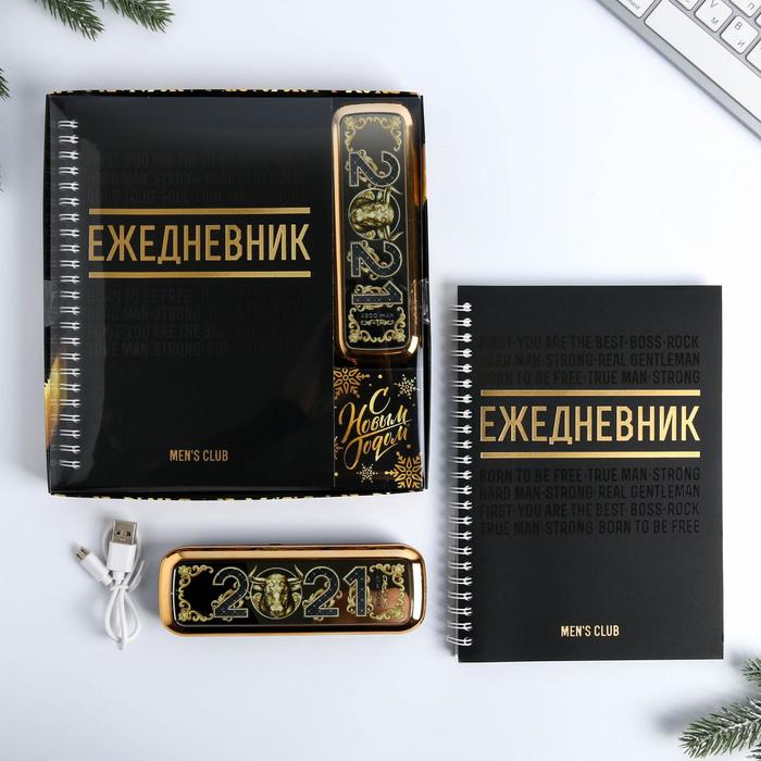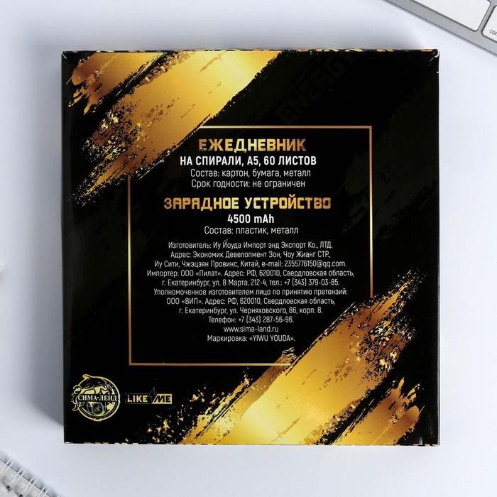<p>Набор с ежедневником и портативным аккумулятором станет отличным подарком для делового человека. Ежедневник напомнит о важных встречах и делах, а портативный аккумулятор поможет всегда оставаться на связи.</p><p>В набор входит ежедневник на спирали формата А5 (60 листов) и зарядное устройство 4500 mAh.</p>