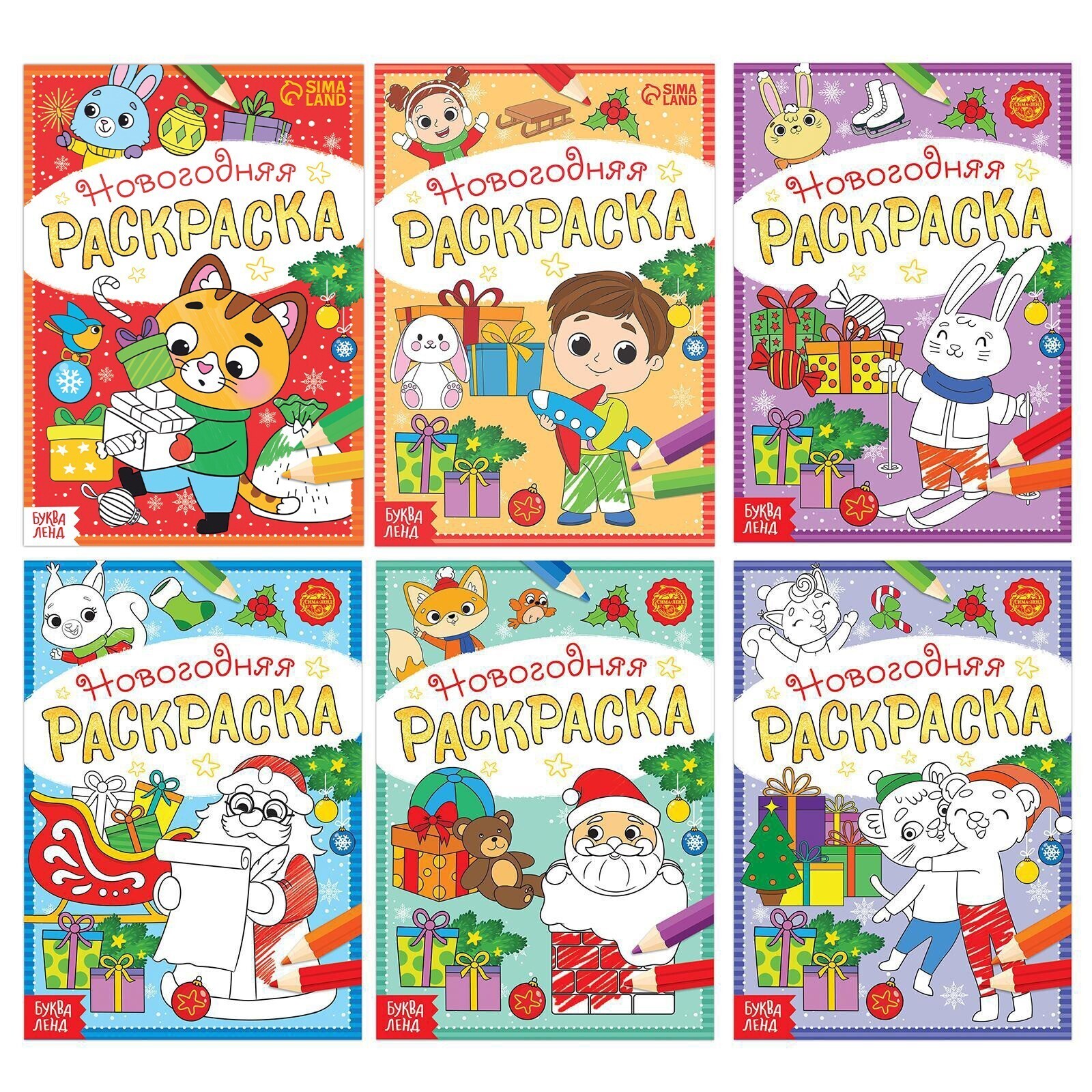 Раскраски новогодние набор «К нам приходит праздник», 6 шт по 12 стр. 5206464