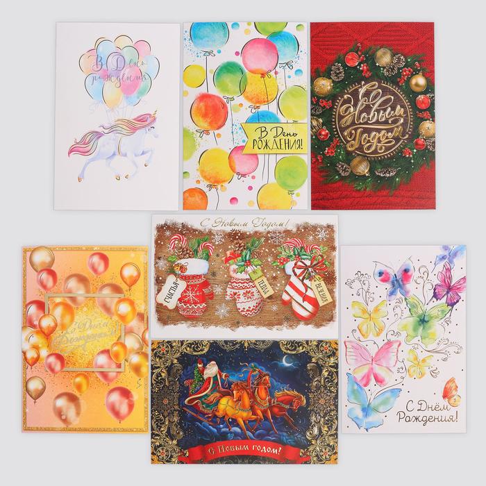Набор открыток "Яркого Нового Года" тиснение, 12х18см, 7 штук 5269813