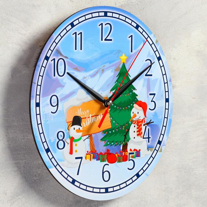 Часы настенные, серия: Новый год, "Подарки снеговиков", d=24 см, плавный ход 5307584