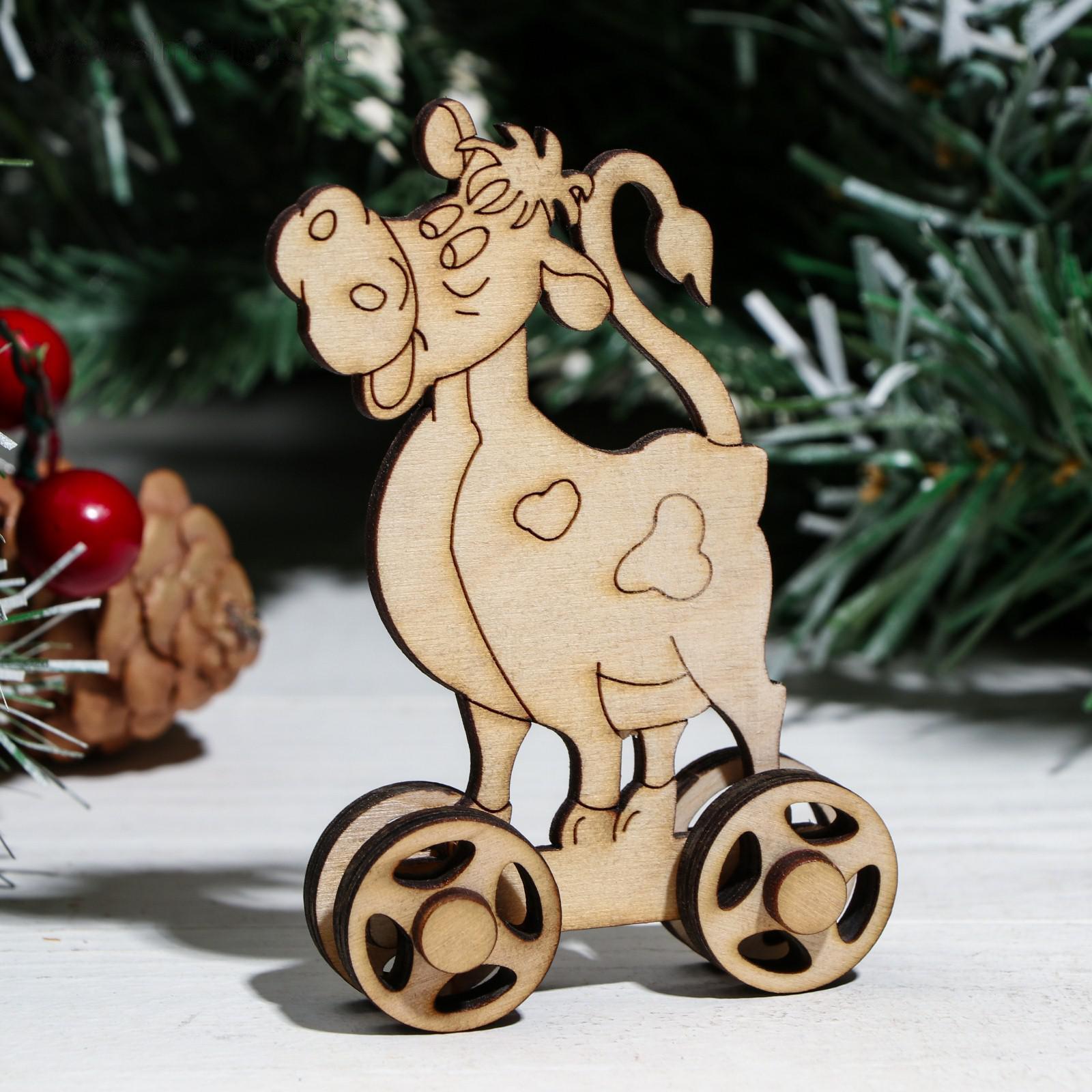 Сувенир "Бычок Хвостик. Колёсики", 7,4х10 см, дерево 5364886
