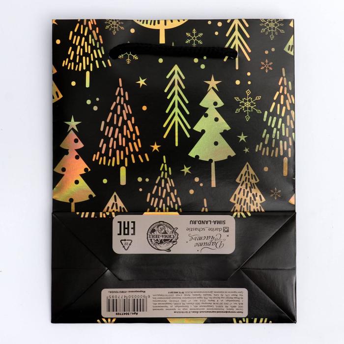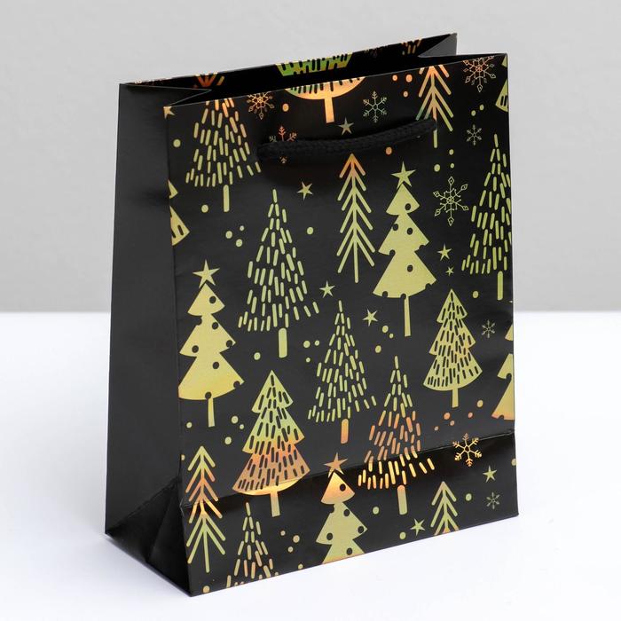 Пакет голографический вертикальный «Елки», S 12 × 15 × 5.5 см 5047709