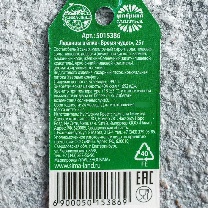 <b>Состав: белый сахар, мальтозный сироп, вода, пищевая соль, пищевые добавки (лимонная кислота, кармин, лимонный крон, жёлтый «Солнечный закат» (пищевой краситель), ярко-синий пищевой краситель), ароматизирующая эссенция. Вид готового изделия: сахарный песок, крахмальная патока (твердые конфеты). Срок годности: 24 месяца. Масса нетто: 25 г.</b>