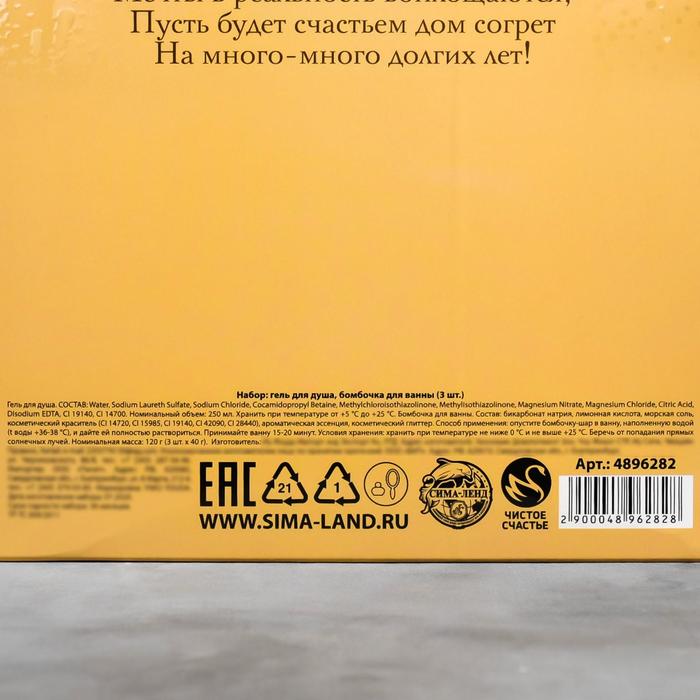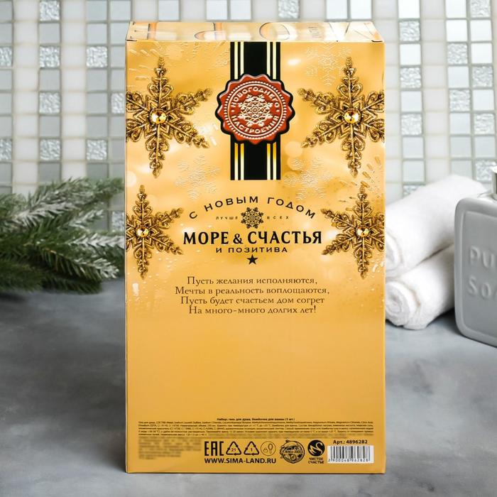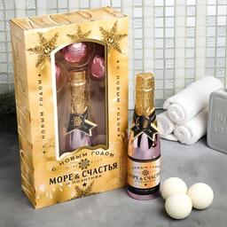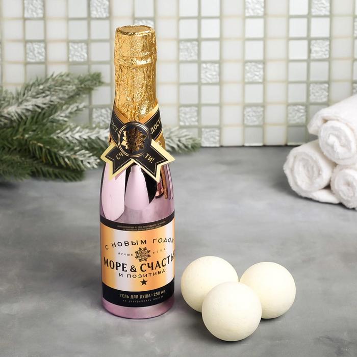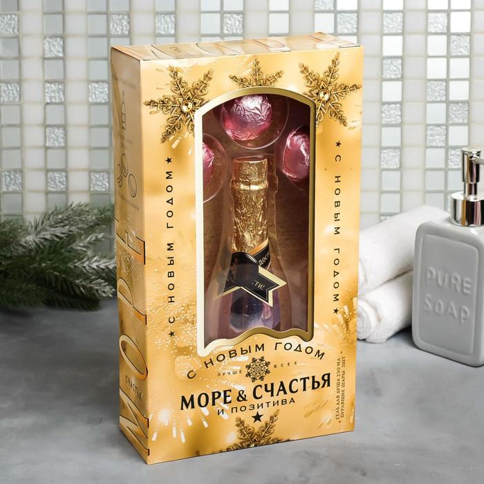Гель для душа Шампанское "Море счастья и позитива", + бомбочки для ванн 3 шт 4896282