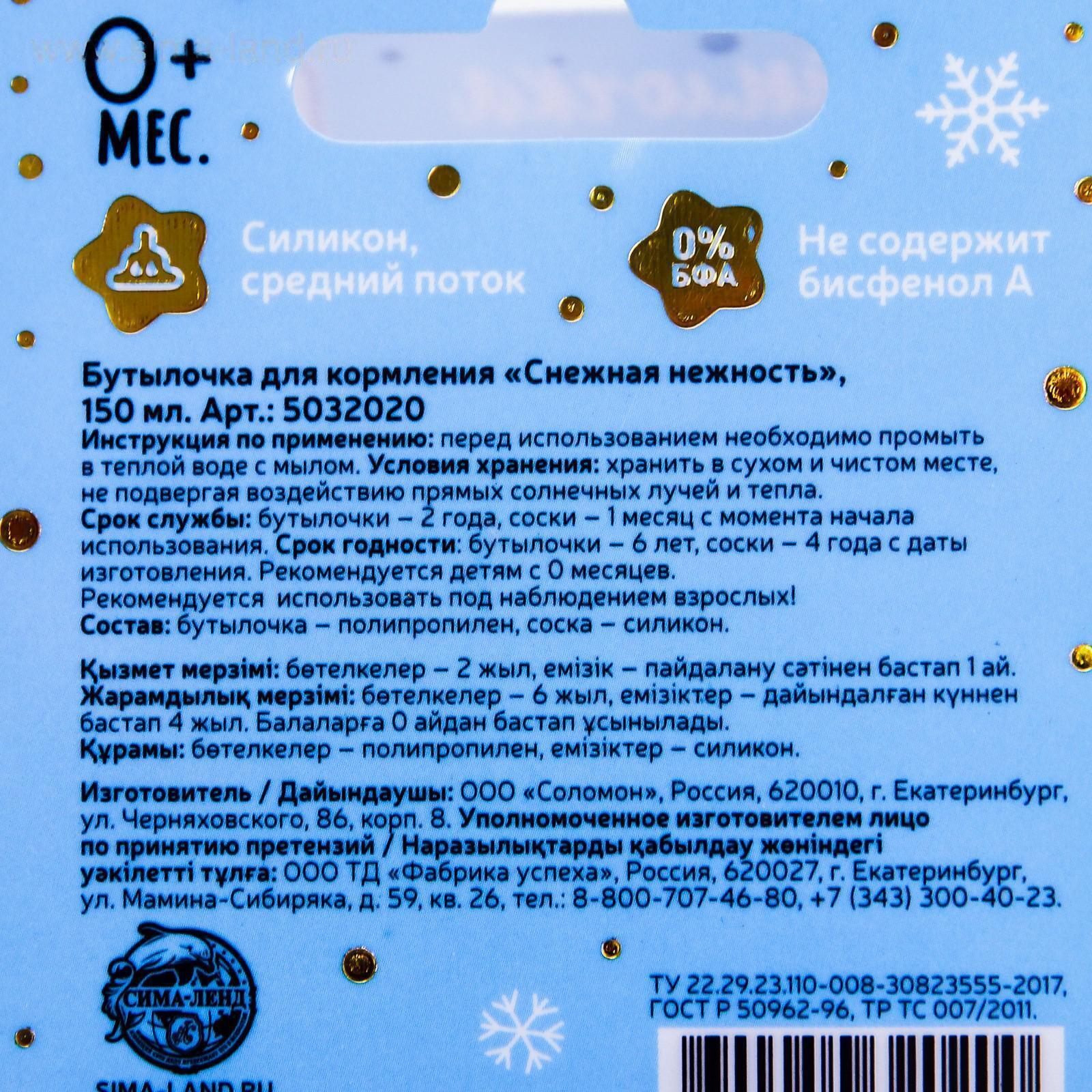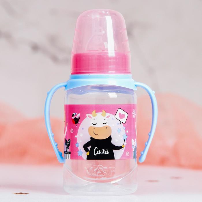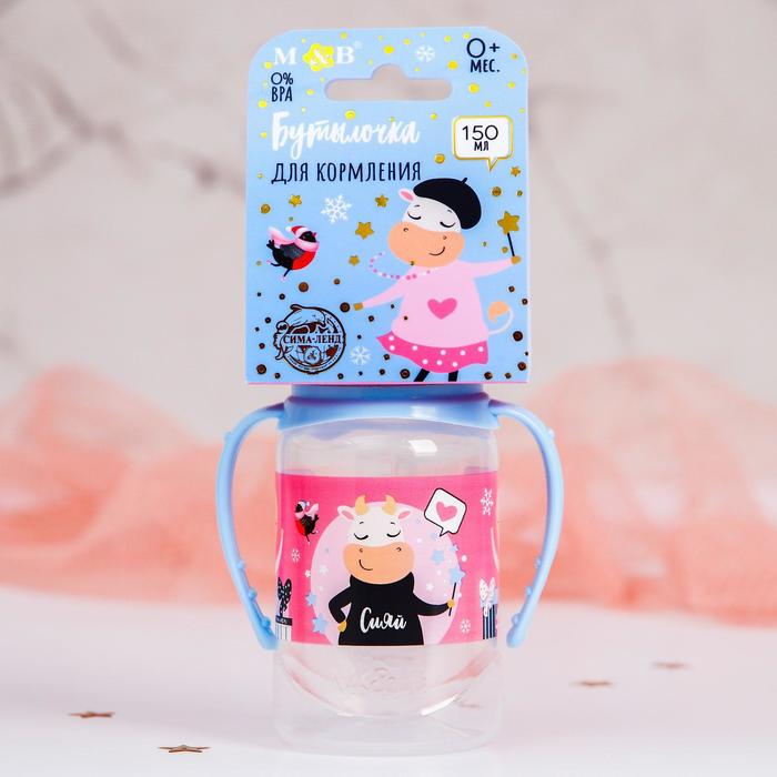 Бутылочка для кормления "Снежная нежность" 150 мл цилиндр, с ручками 5032020