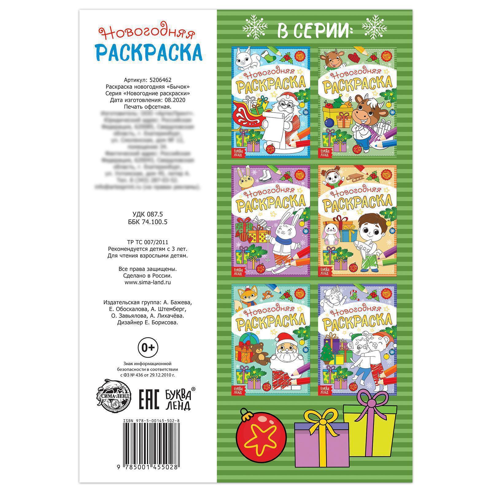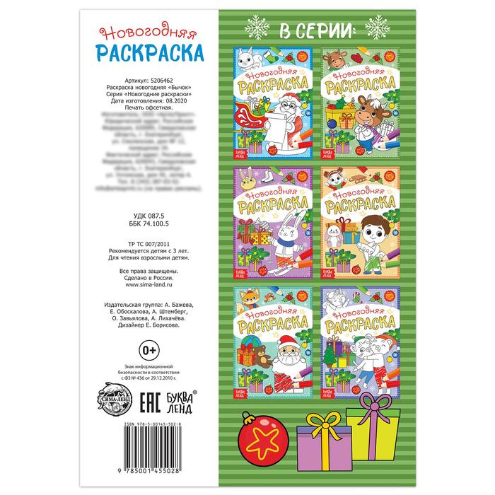 Раскраска новогодняя «Бычок», 12 стр. 5206462
