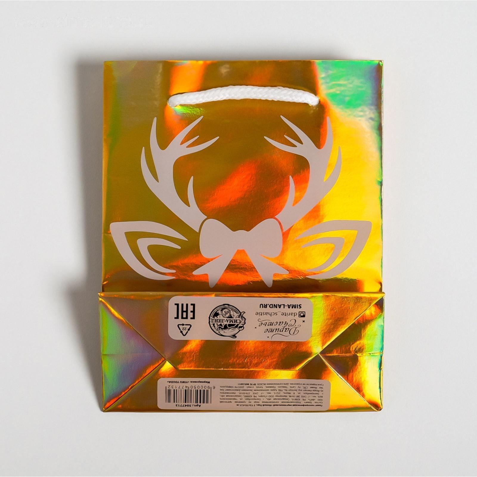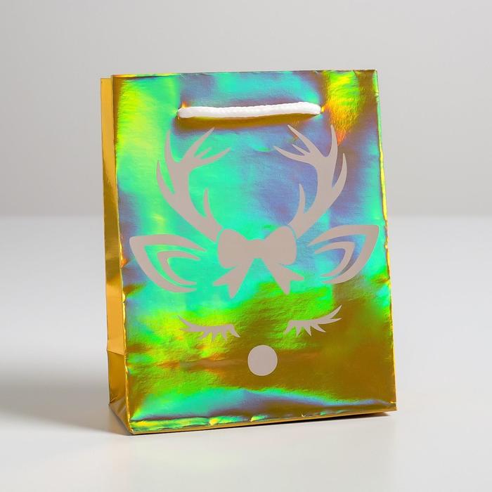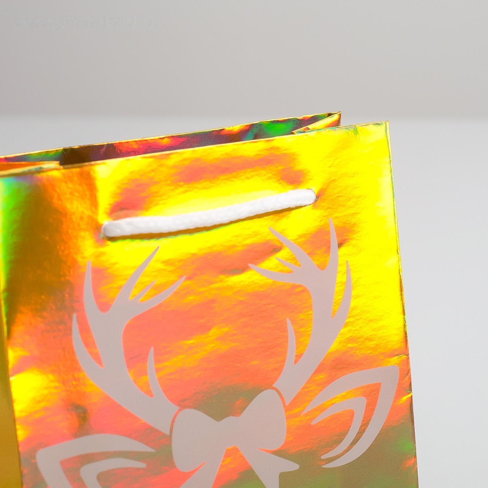 Пакет голографический вертикальный «Новый год», S 12 × 15 × 5.5 см 5047713