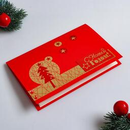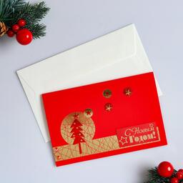 Открытка ЛЮКС "С Новым Годом!" ручная работа, бархатный картон, Ёлка, звезды 5386663