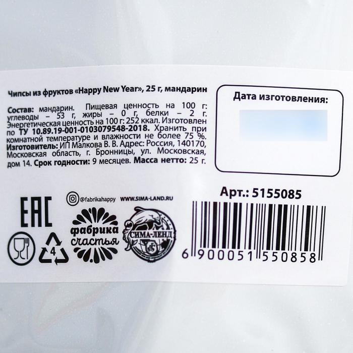 Фруктовые чипсы Happy New Year: мандарин, 25 г 5155085