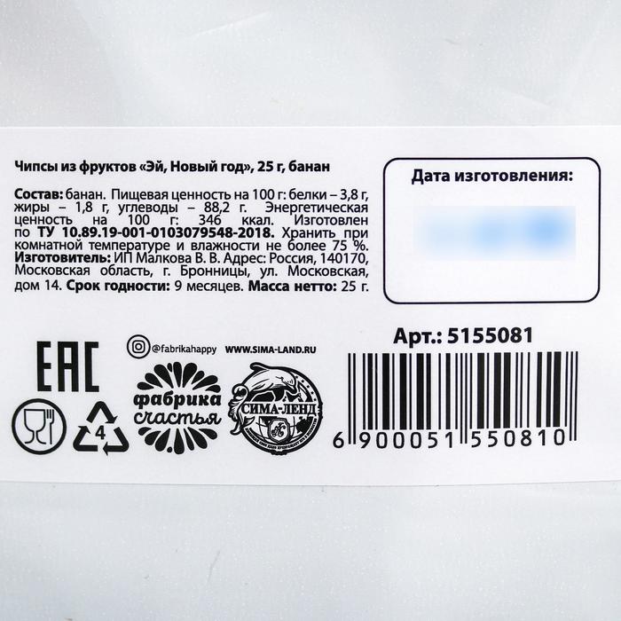 Фруктовые чипсы «Эй, Новый год»: банан, 25 г 5155081