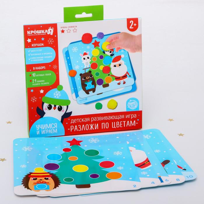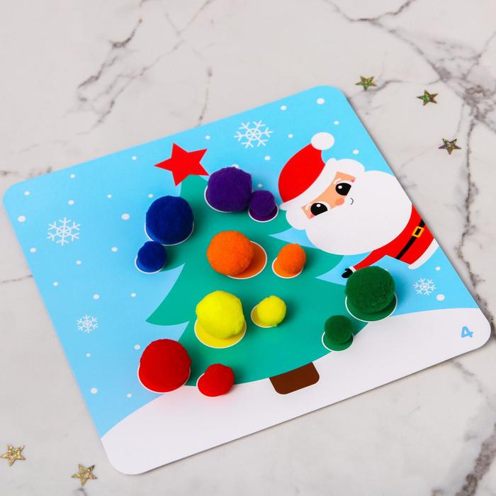 Развивающая игра с помпошками "Разложи по цветам. Новогодняя ёлочка" 4971027