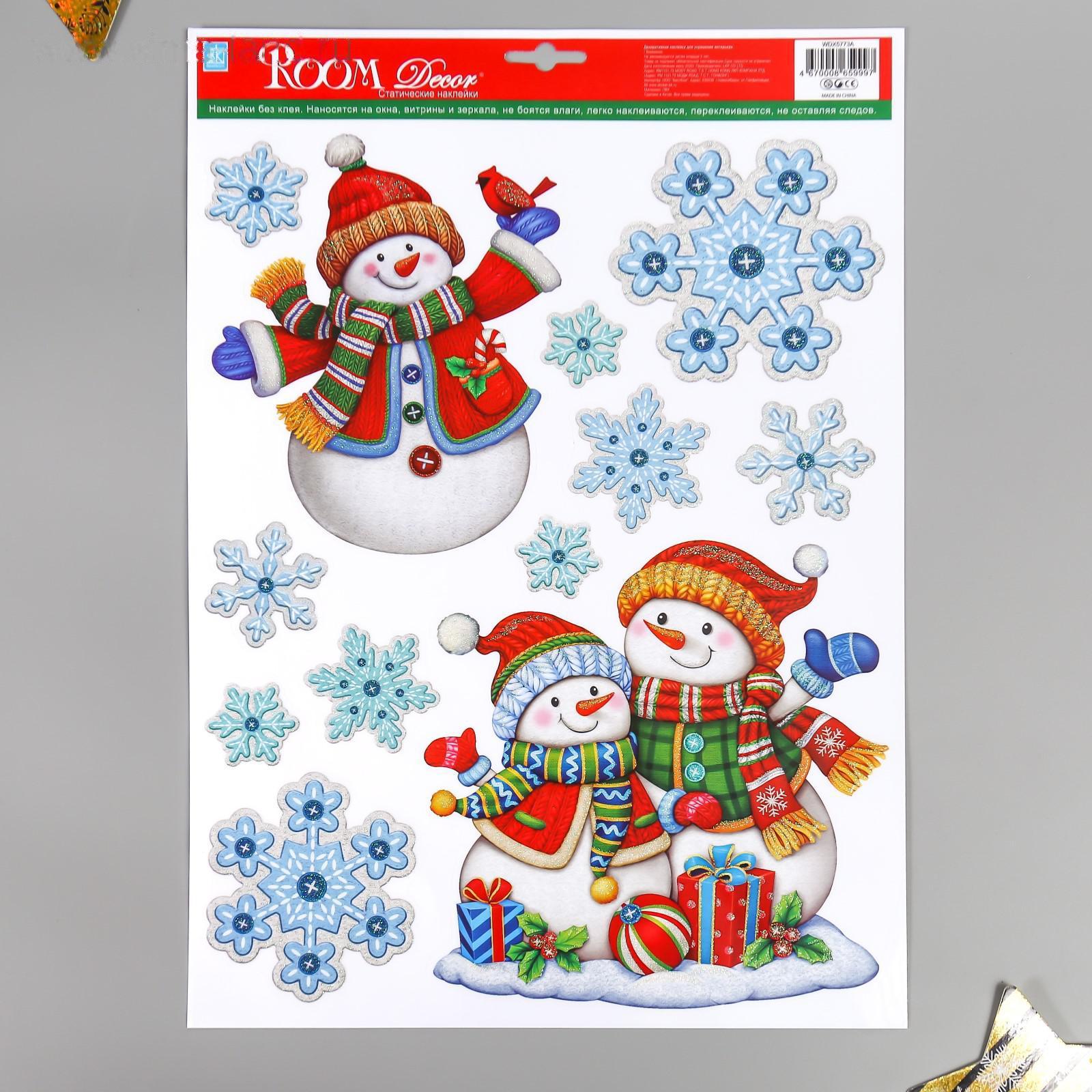 Статическая наклейка для окон и зеркал Room Decor "Три снеговика с подарками" 29х41 см 5389951