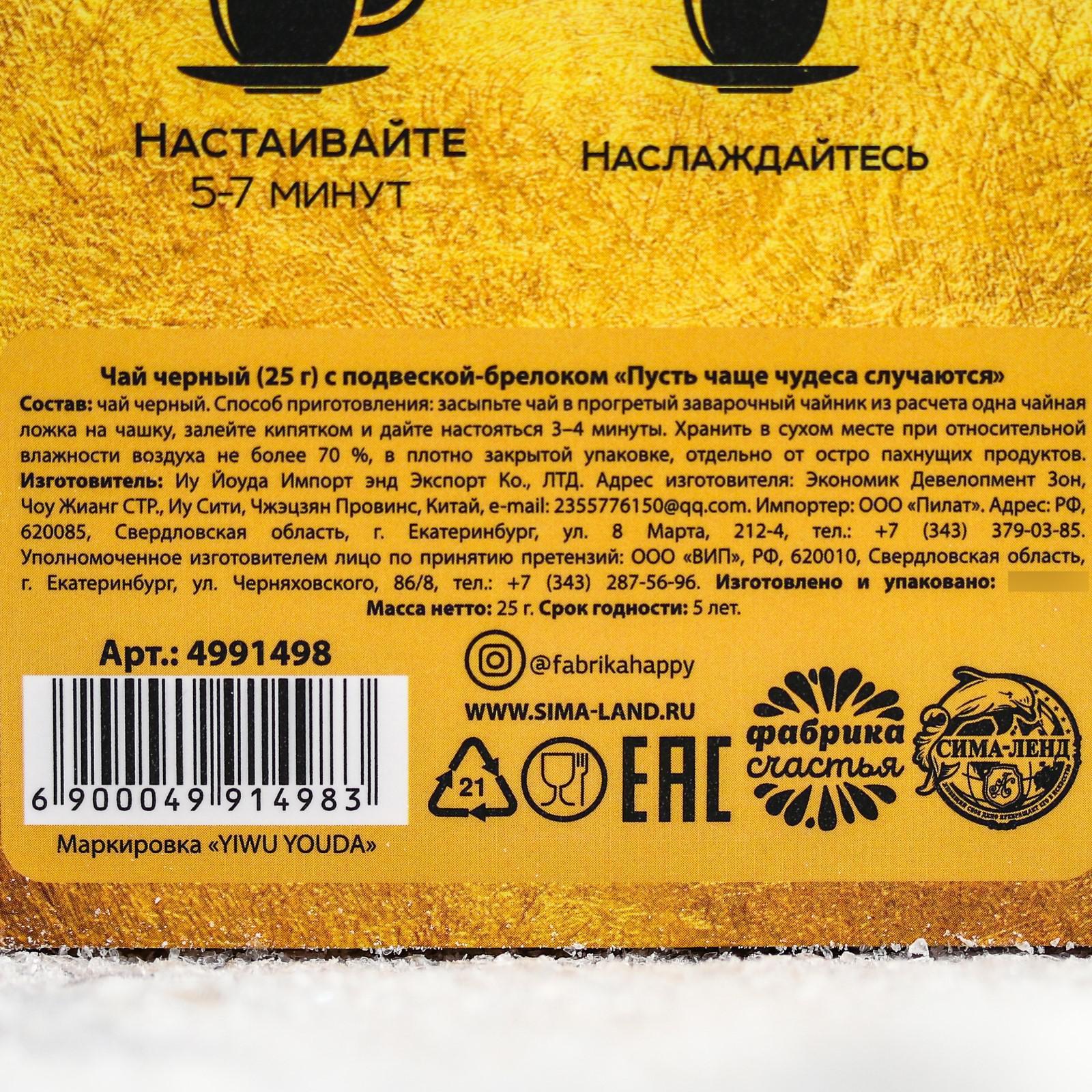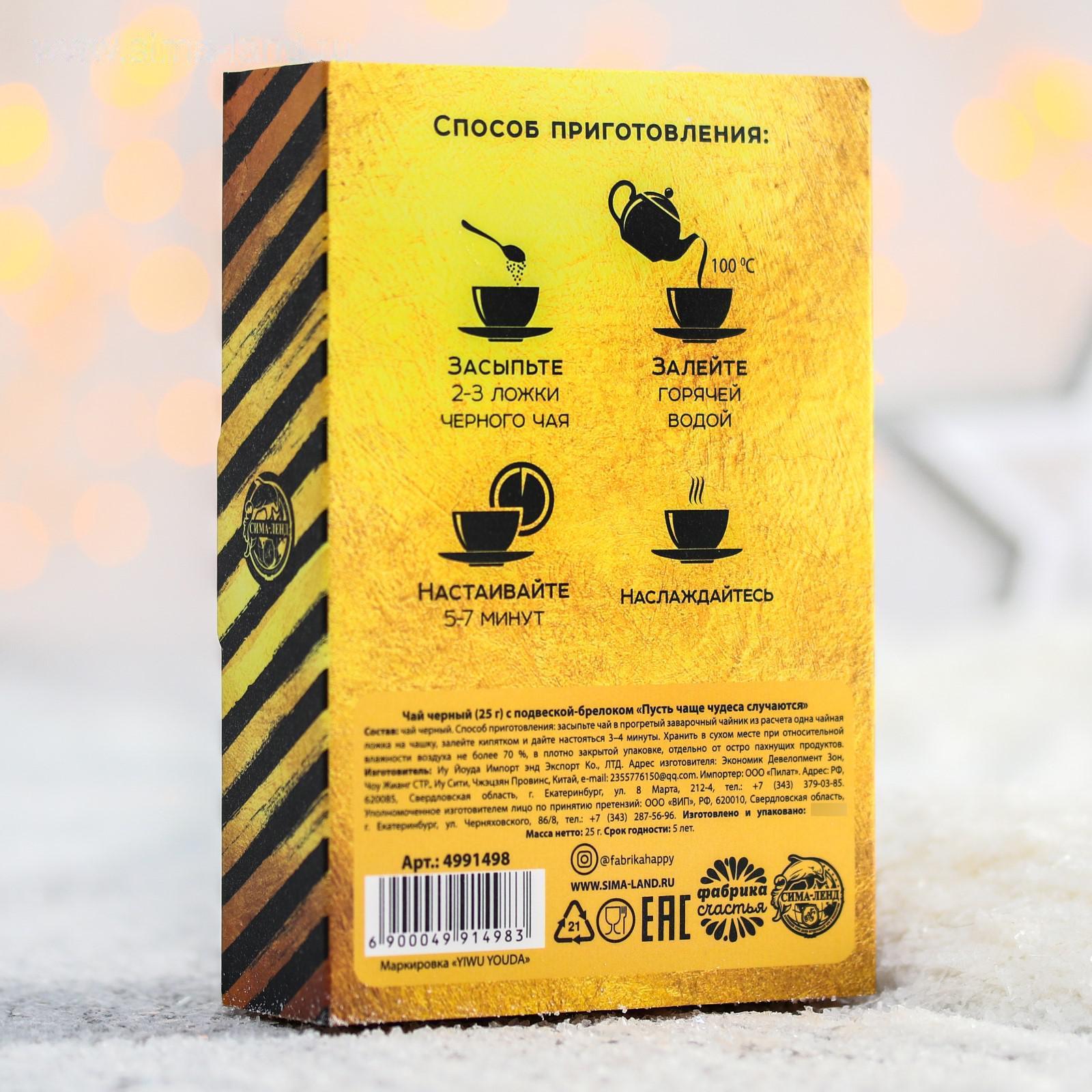 Чай чёрный «Пусть чаще чудеса случаются»: с брелоком-подвеской, чай 25 г 4991498