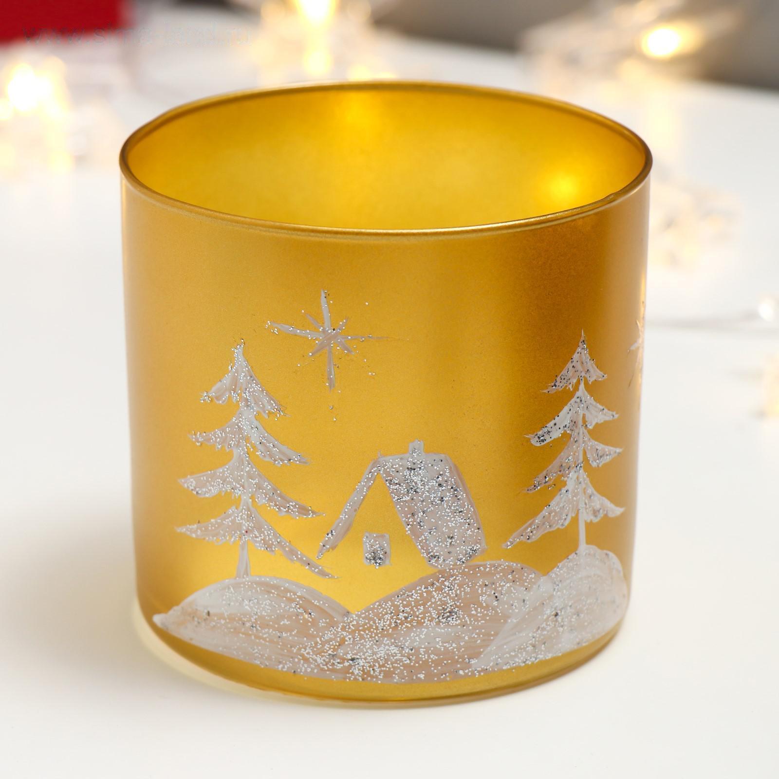 Подсвечник "Зимние узоры-1" ручная роспись 10х10,5 см 5222453
