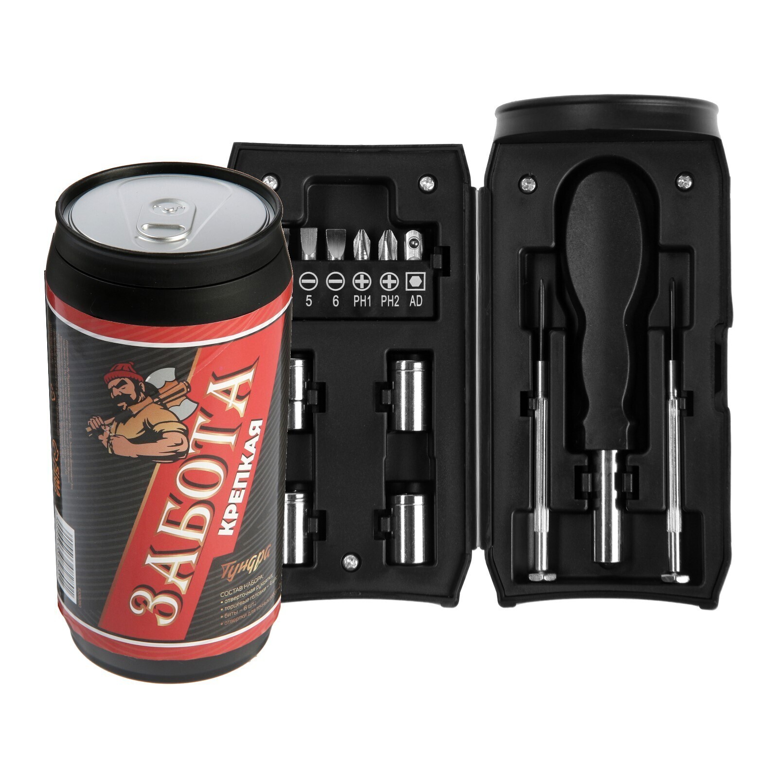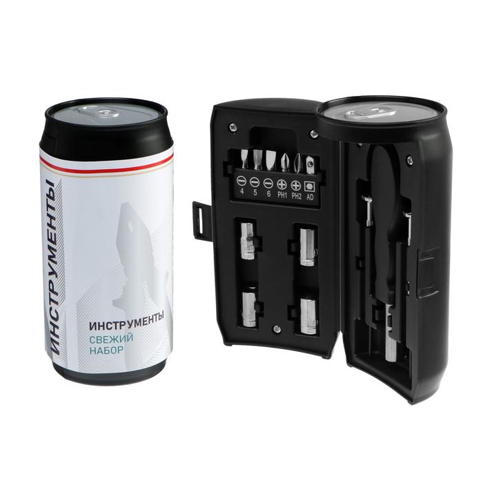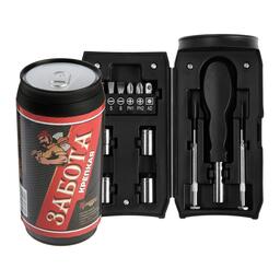 Подарочный бокс в виде банки, как из-под газированного напитка выполнен из ударопрочного пластика. Данный набор станет отличным подарком как для домашних мастеров, так и для профессионалов.