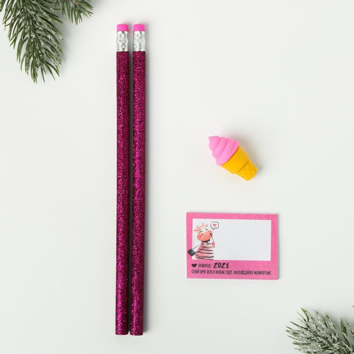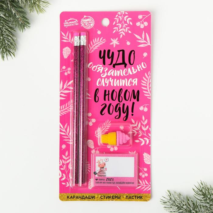 Набор «Чудо обязательно случится», 2 карандаша, стикеры, 20 л, стирательная резинка 5037025