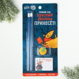 Набор «Новый год», 2 карандаша, стикеры, 20 л, стирательная резинка 5037020