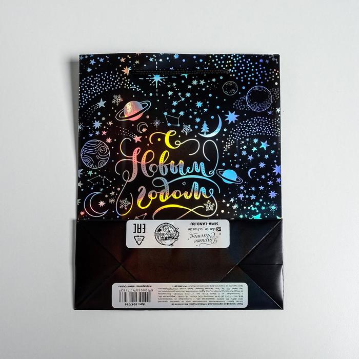 Пакет голография вертикальный «С Новым годом», MS 23 × 18 × 10 см 5047716
