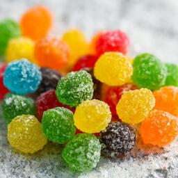 <b>Состав: сахар белый, патока крахмальная, вода питьевая, регулятор кислотности – лимонная кислота, ароматизаторы пищевые: «Ананас», «Апельсин», «Яблоко зелёное», «Малина», «Кола», «Мята», красители синтетические: тартразин, жёлтый «Солнечный закат», понсо 4R, «Кола», «Зелёное яблоко»: Е102, Е133. Не содержит ГМО. Масса нетто: 100 г. Срок годности: 6 месяцев.</b>