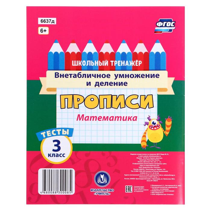 Тесты. Математика. 3 класс 2 часть: Внетабличное умножение и деление. Прописи 5370656