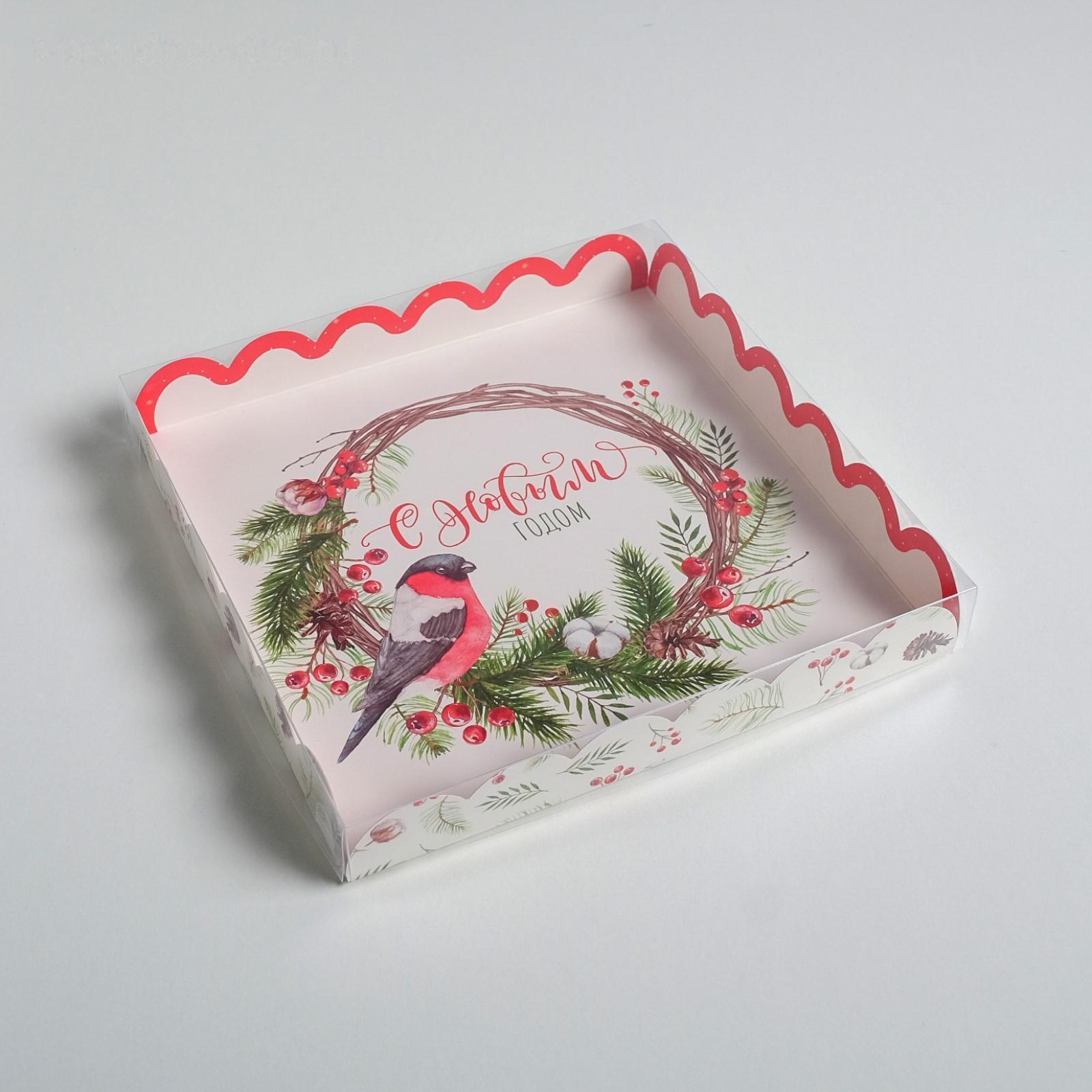 Коробка для кондитерских изделий с PVC крышкой «С Новым годом», 21 × 21 × 3 см 5128777