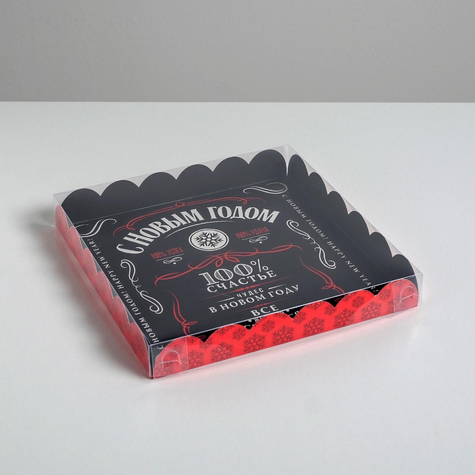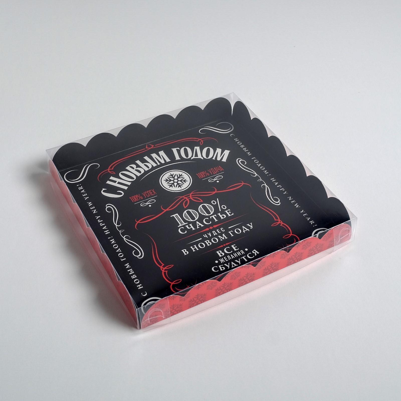 Коробка для кондитерских изделий с PVC крышкой «100% Счастье», 21 × 21 × 3 см 5128741