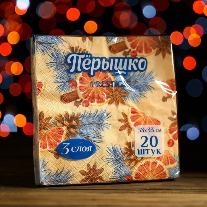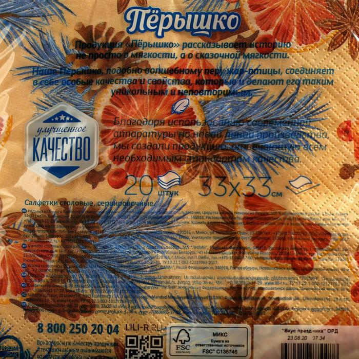 Салфетки бумажные Перышко Prestige 33х33 "Вкус праздника" 3сл 20л, Вкус праздника 5378250