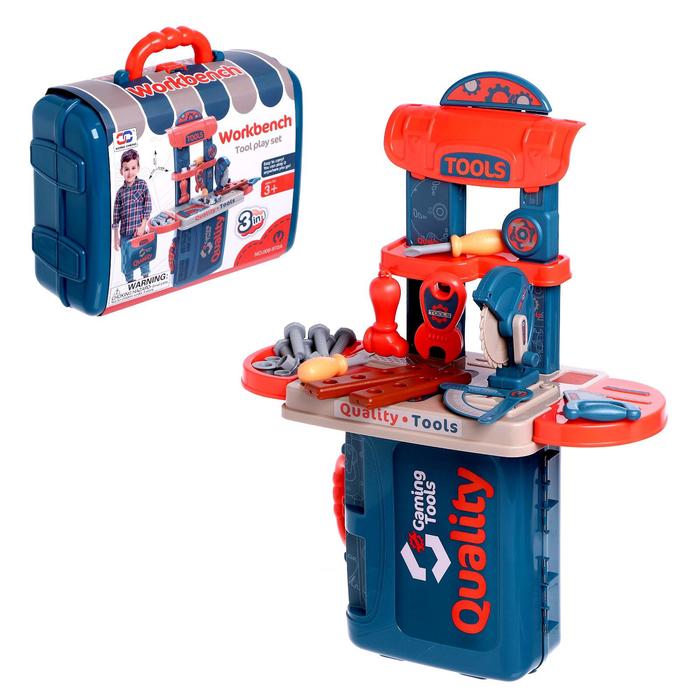 Вашему малышу интересны инструменты? Ему хочется что-нибудь починить? Тогда эта детская мастерская «Умелец» точно для него! Набор инструментов 3 в 1: чемодан, верстак и столешница.