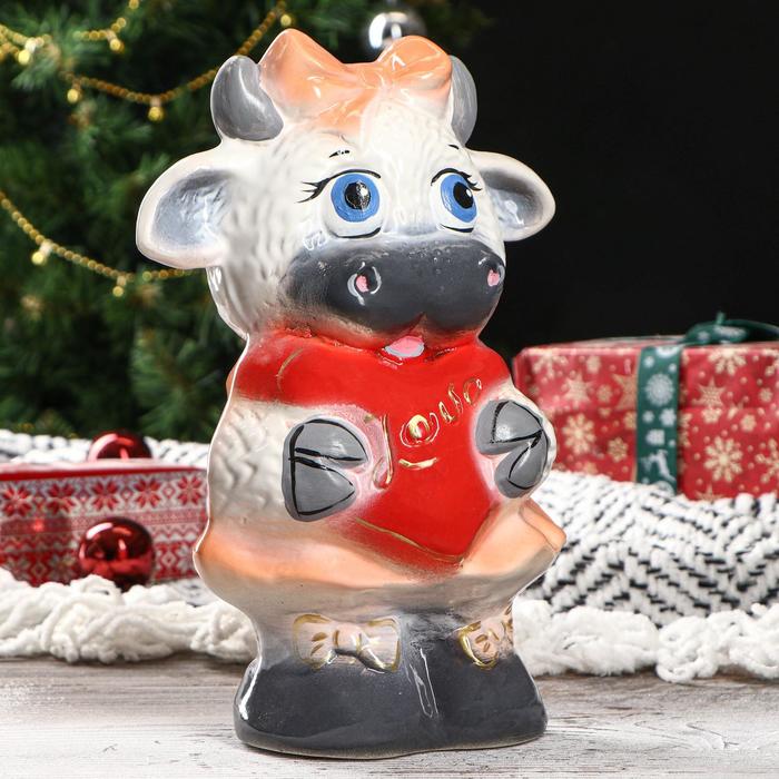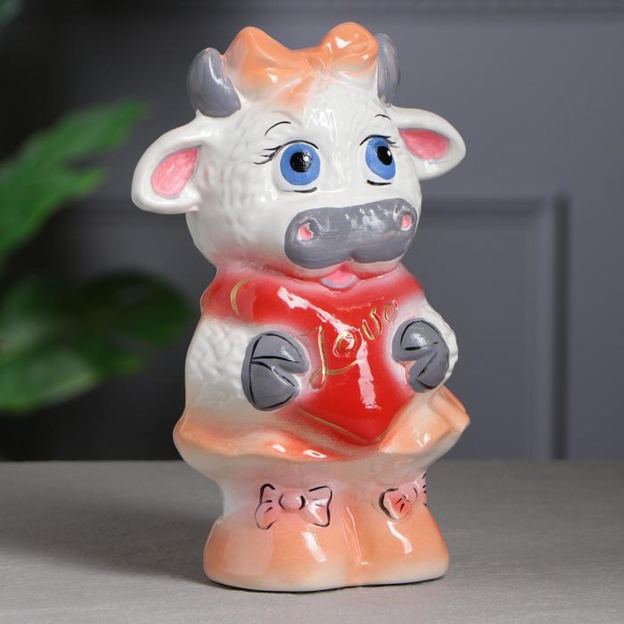 Копилка "Коровка с сердечком", цветная глазурь, 24 см, микс 5284400