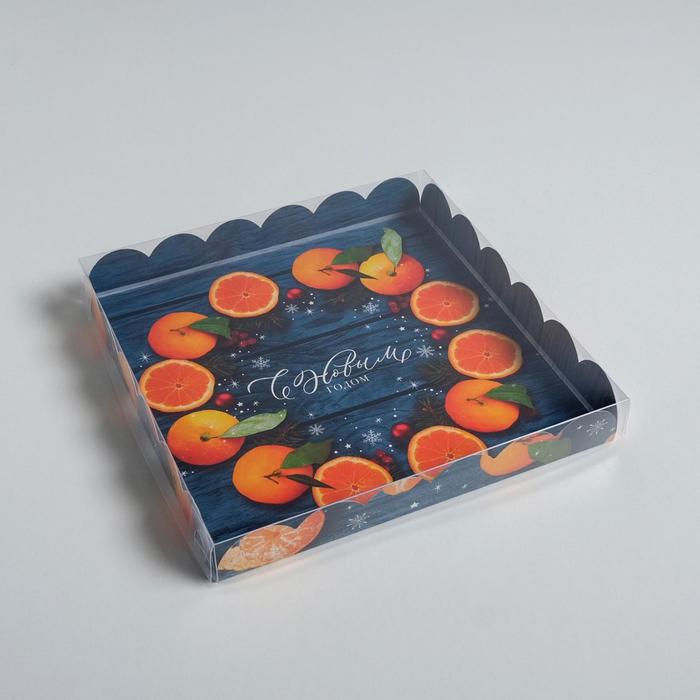 Коробка для кондитерских изделий с PVC крышкой «С Новым годом», 21 × 21 × 3 см 5128774