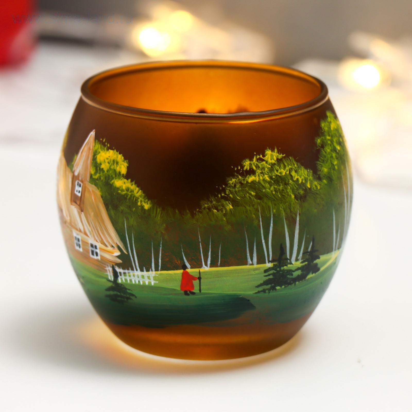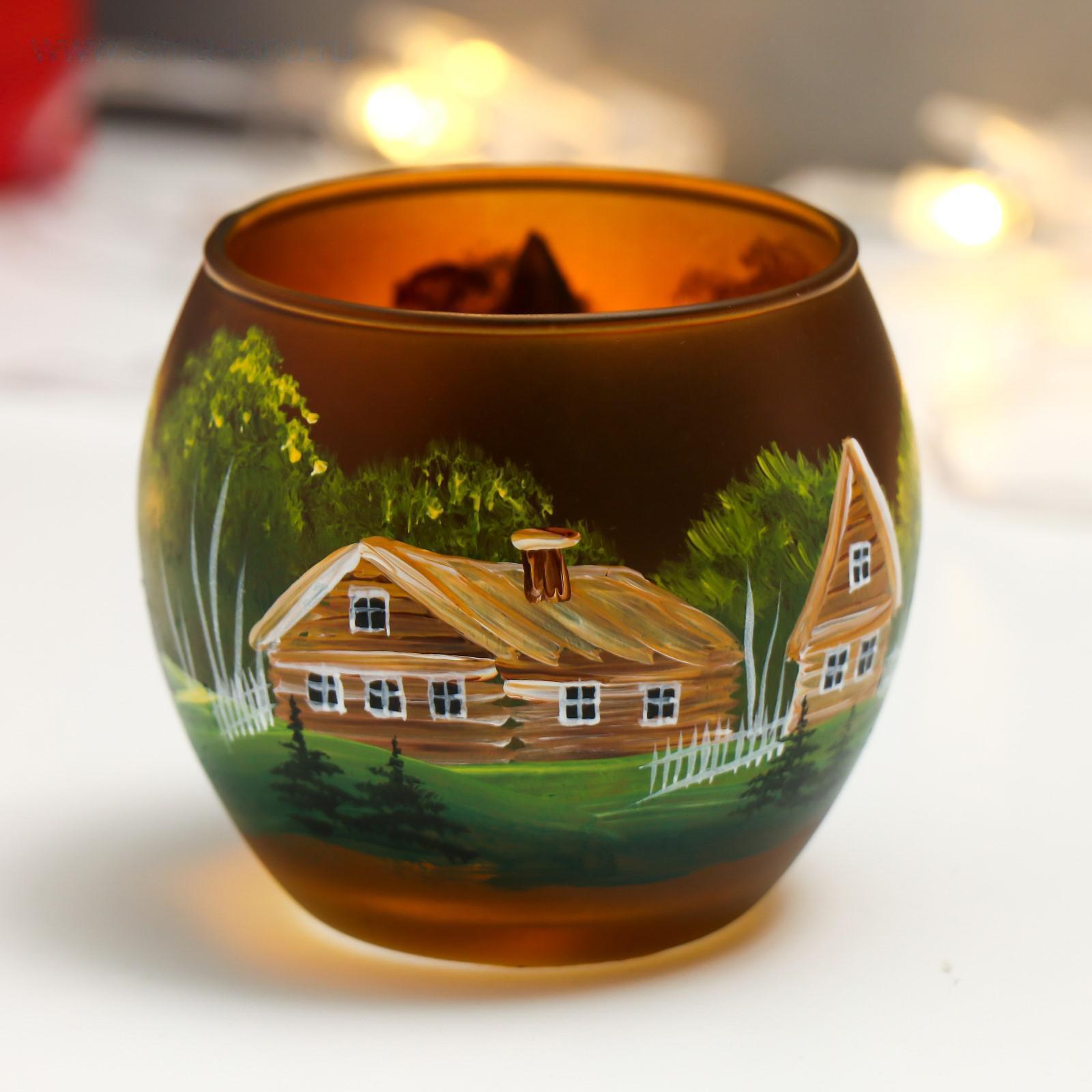 Подсвечник "Деревенька" ручная роспись 8,5х7,7 см 5222399