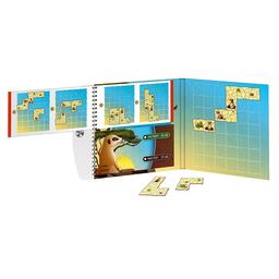 Выбирайте задание одного из четырёх уровней сложности и выстраивайте на игровом поле сторожевой пост из четырёх зверьков по горизонтали, вертикали или диагонали с помощью магнитных фишек.