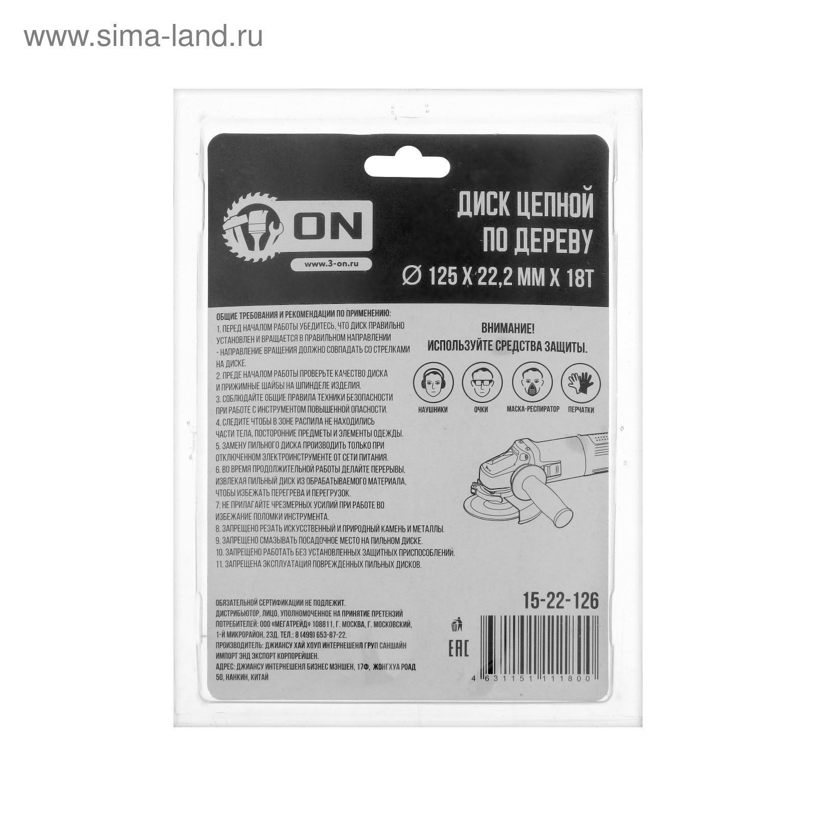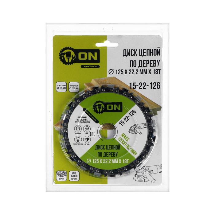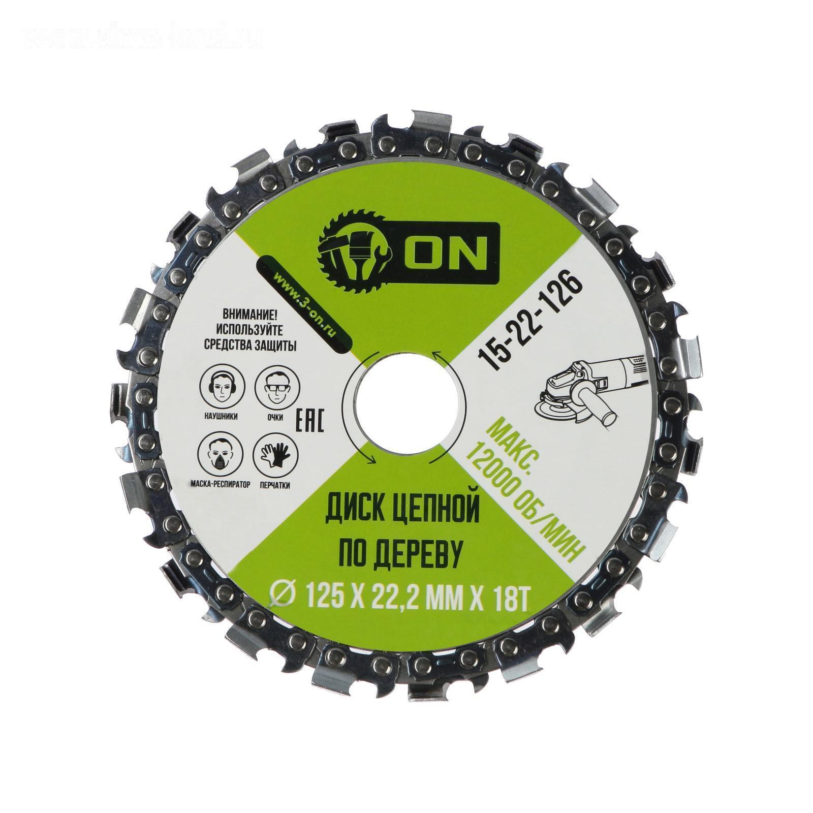 Диск пильный цепной для УШМ ON 15-22-126, по дереву, 125x22.2 мм, 18T, 12000 об/мин 5367090