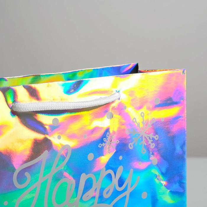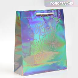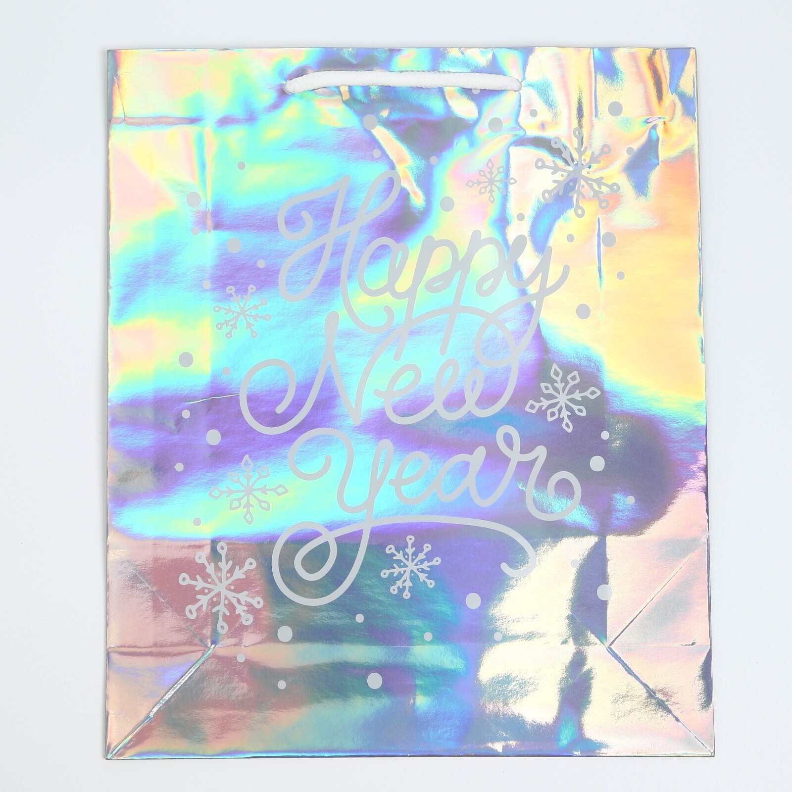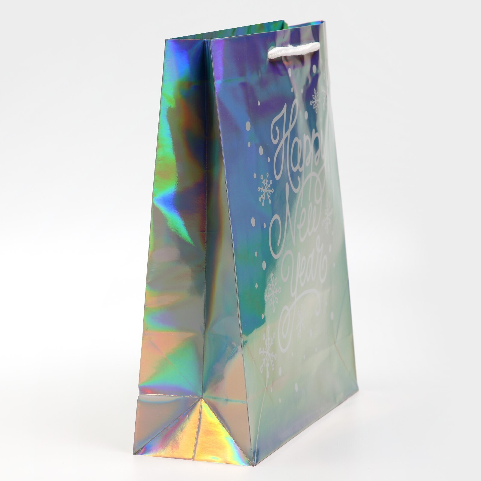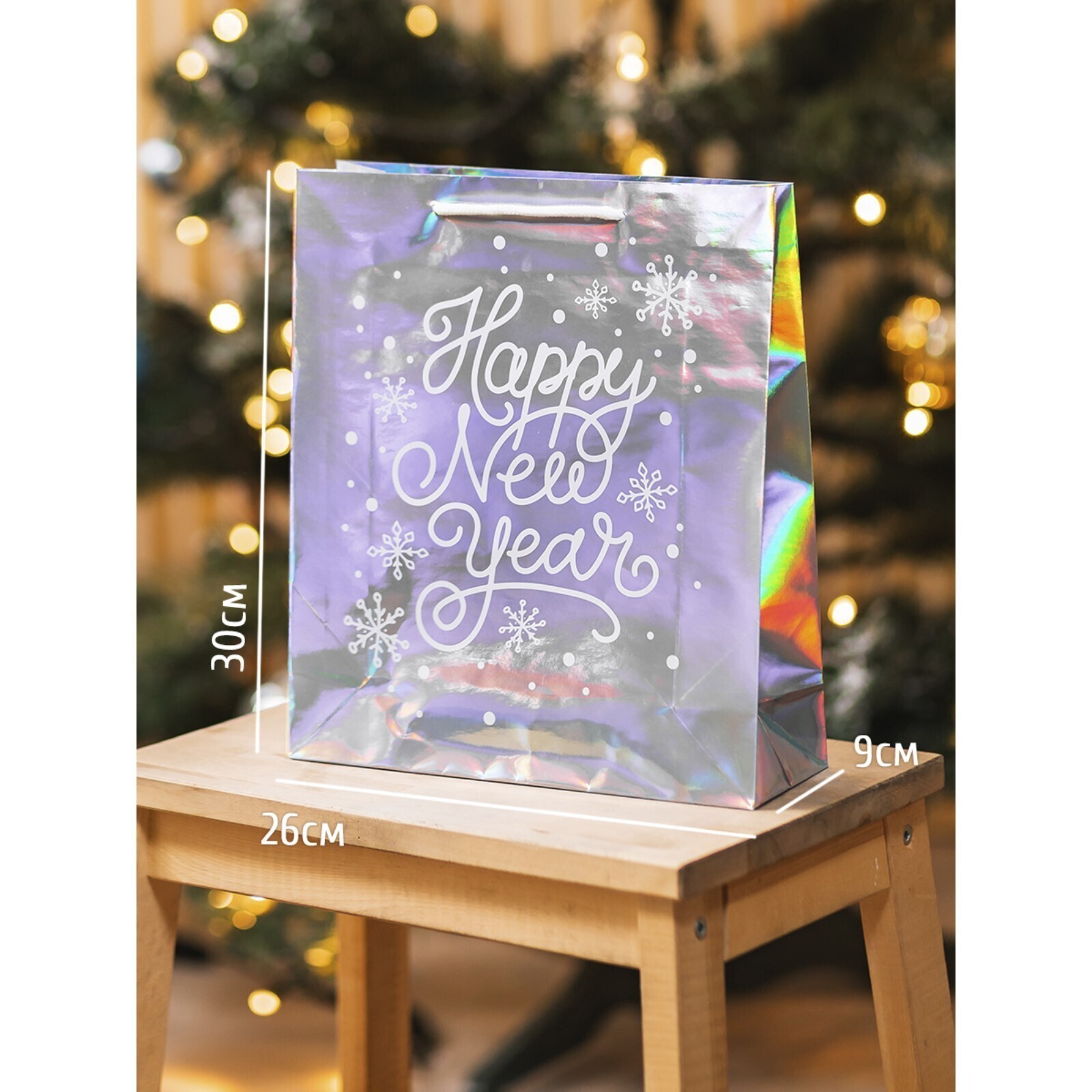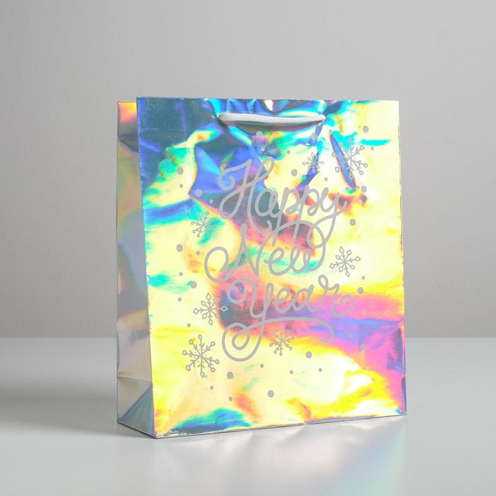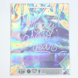 Пакет голографический вертикальный Happy New year, M 26 x 30 × 9 см 5047735