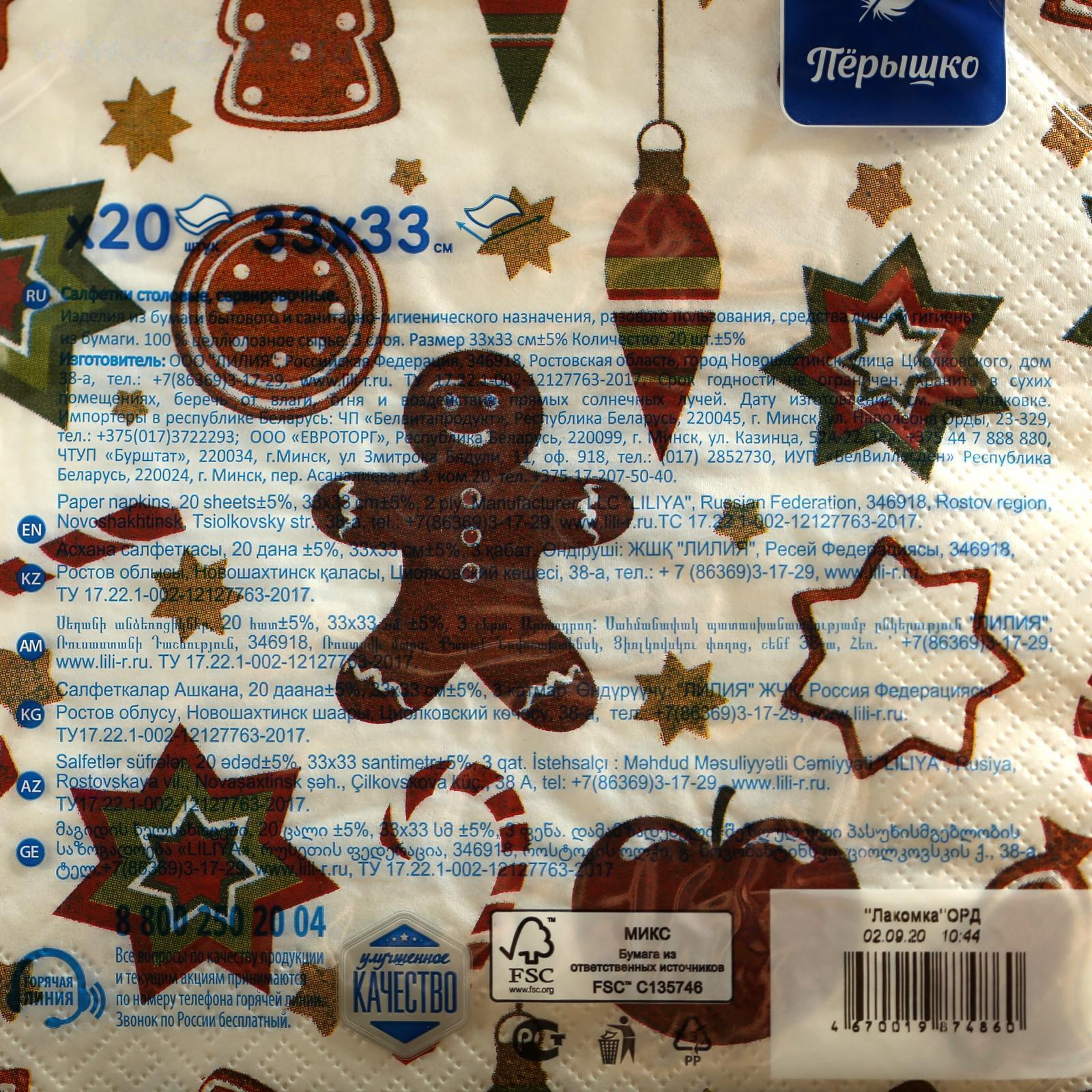 Салфетки бумажные Перышко Prestige 33х33 "Лакомка" 3сл 20л, Лакомка 5378264