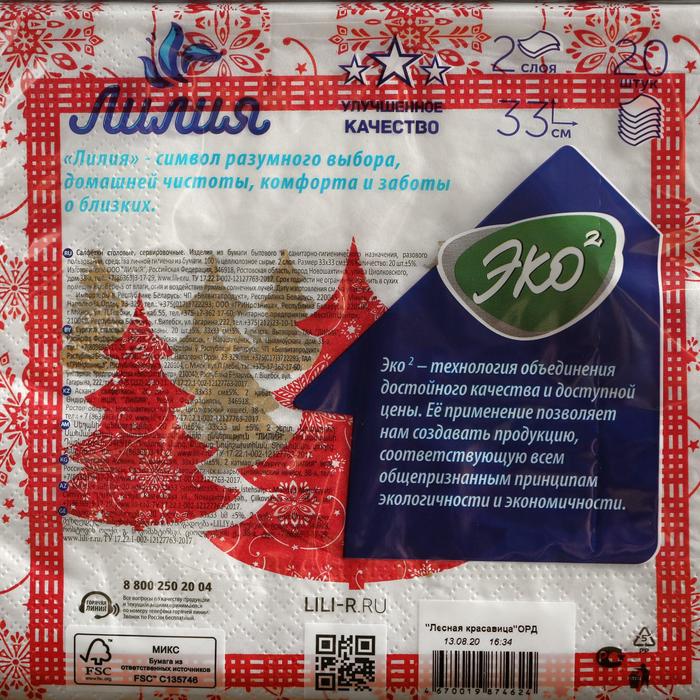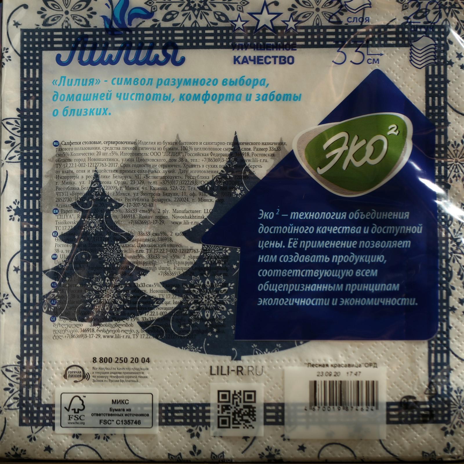 Салфетки бумажные Лилия 33х33 "Лесная красавица" ОРД 2сл 20л, Лесная красавица микс 5378259