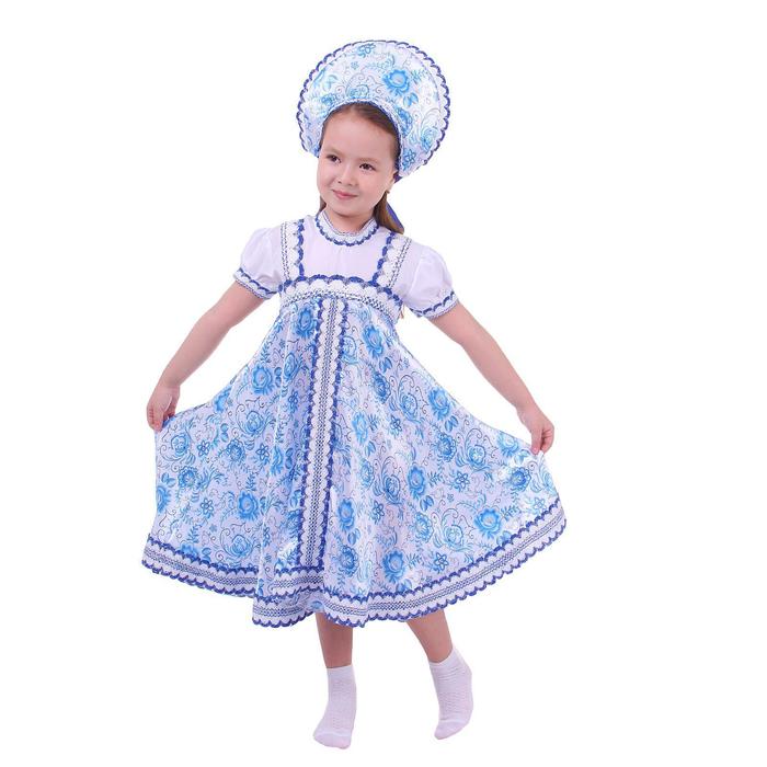 Русский народный костюм для девочки с кокошником, голубые узоры, р. 32, рост 122-128 см 5296358