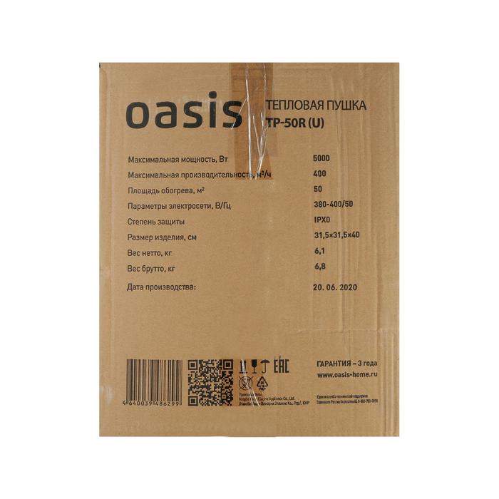 Тепловая пушка Oasis TP-50R, электрическая, 380 В, 30/2500/5000 Вт, 400 м3/ч, до 50 м2, IPX0 5312191
