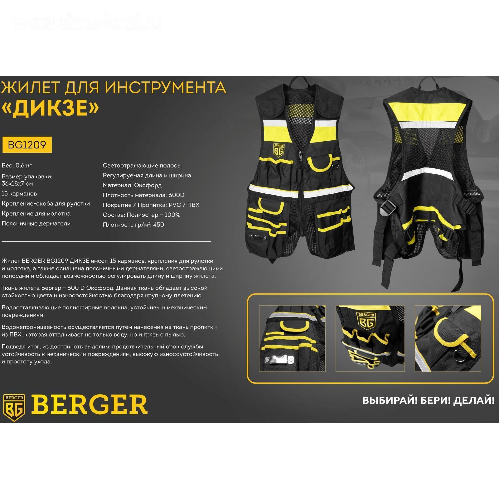 Жилет для инструмент Berger BG1209, 15 карманов, 44-60 размер, светоотражающие полосы 5395358