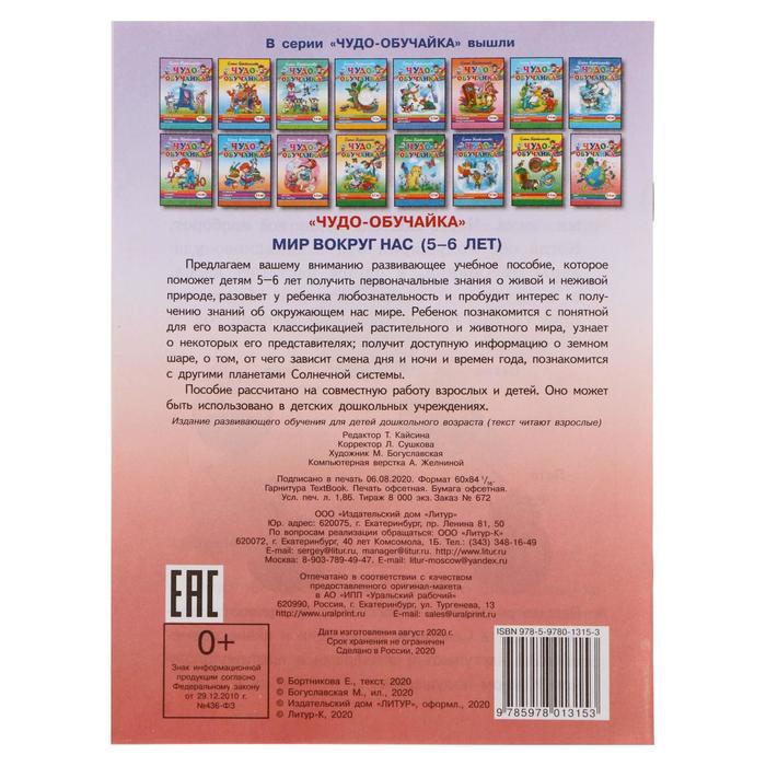<p>Чудо-обучайка. Мир вокруг нас 5-6 лет Бортникова — отличный вариант для тех родителей, которые привыкли окружать своего малыша только лучшими и качественными вещами. За такой книжкой ваш ребёнок проведёт время с пользой и удовольствием, узнает много нового и интересного.</p>