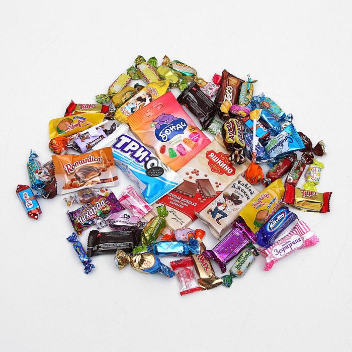 <p><b>В подарке 55 изделий:</b></p><p><b>Mars:</b> Milky Way - 1 шт; Twix - 1 шт.</p><p><b>Люси:</b> Мармелад Новогодний - 1 шт.</p><p><b>Красный Октябрь:</b> Цитрон - 1 шт; Пилот - 1 шт; Ирис Сказка Золотой ключик - 1 шт; Забава, вишня - 2 шт; Забава, лимон - 2 шт ;Батончики Полюшко - 2 шт.</p><p><b>КДВ, Яшкино:</b> Карамель на палочке Strike, ассорти - 1 шт; Super - 1 шт; Jet`s - 1 шт; Кремка клубника и сливки - 1 шт; Джаззи - 1 шт; Евгеша - 1 шт; Fruit Story - 2 шт; Золотая стрекоза - 2 шт; Глэйс - 2 шт; Солярики - 2 шт.</p><p><b>Slasti:</b> Сливочный замок - 1 шт; Весенний луг - 1 шт; Ветер приключений - 1 шт; Перелётная птица - 1 шт; Капля лета - 2 шт; Лимонный блюз - 2 шт; Парашютик - 2 шт.</p><p><b>Sweet life:</b> SUFLEO - 1 шт; Тетёха - 2 шт; Тоффи сливочно-клубничный - 2 шт.</p><p><b>Славянка:</b> Romantica - 1 шт; Детский сувенир - 1 шт; Детский сувенир в стране Лилипутов - 1 шт; Движок - 1 шт; Зефирчик - 1 шт; Печенье Spark - 1 шт; Фрутландия - 2 шт; Чехарда - 2 шт.</p><p><b>Невский кондитер:</b> Ковбой Джонни - 1 шт; Мишки на ватрушках - 1 шт; Рёва/вафельные в глазури - 2 шт.</p>