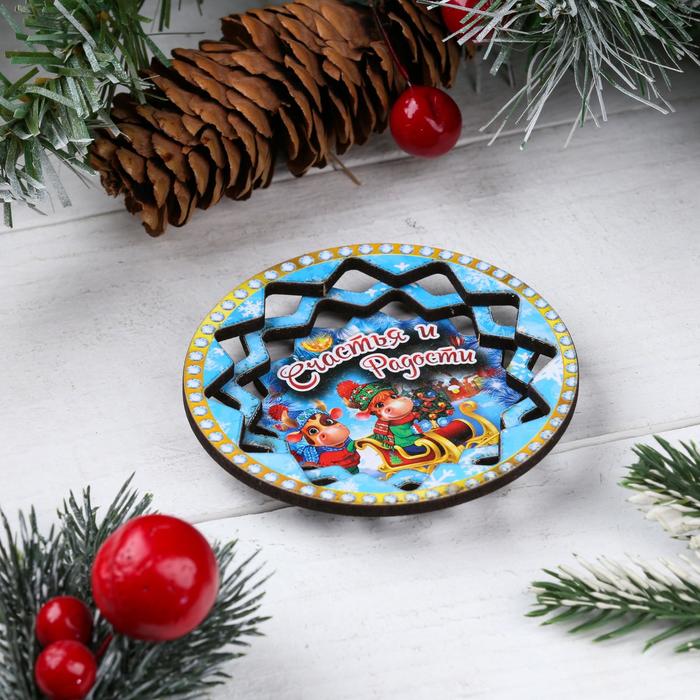 Магнит тарелка "Символ 2021. Новый год №6", с голографией, 8×8 см 5245546