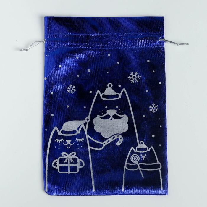 Мешочек подарочный парча «Новогодние коты», 16 х 24 см 5046436