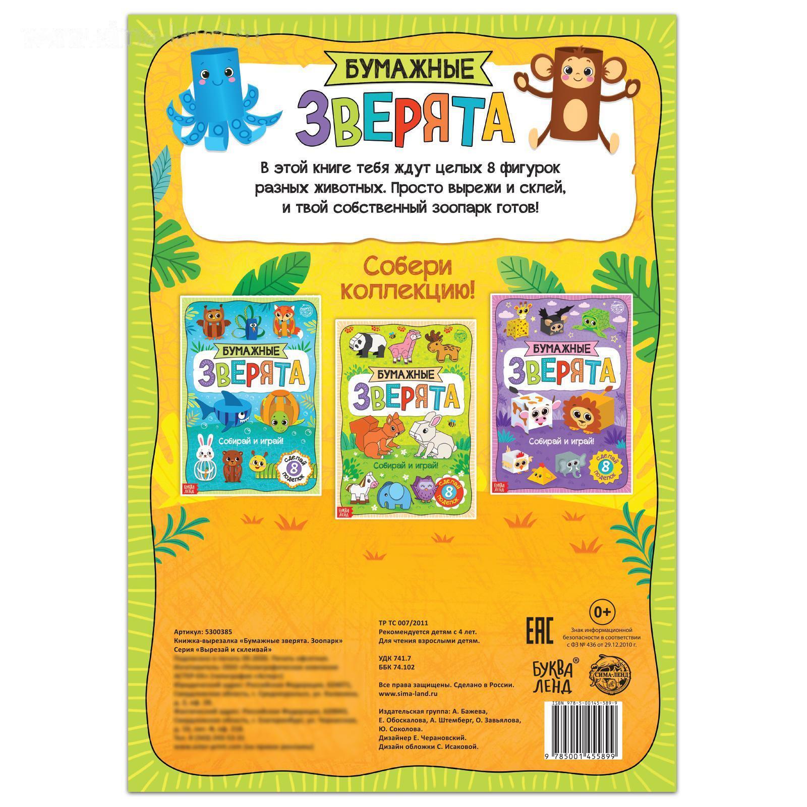 Книжка- вырезалка «Бумажные зверята. Зоопарк», 20 стр, формат А4 5300385