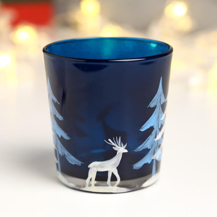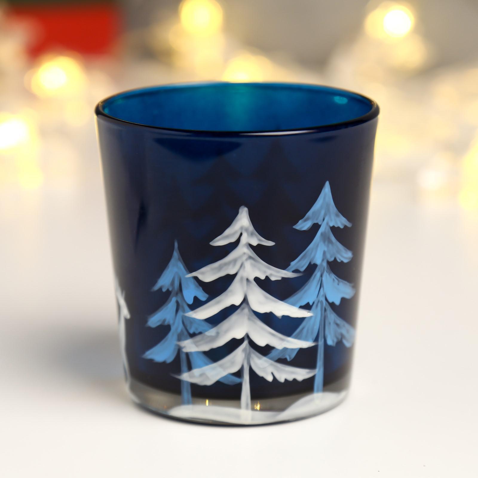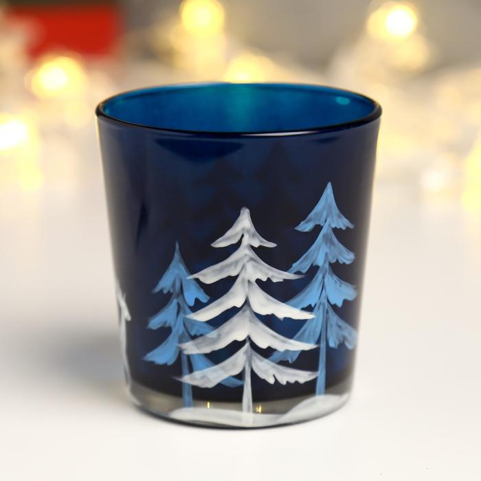 Подсвечник "Зимний лес" синий 8 см 5222395